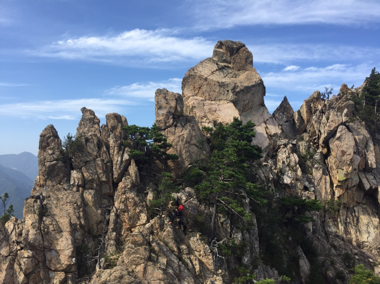 어쩌다보니 말번을 서게 되었고 칼능선이 주는 두려움 때문에 1피치부터 긴장을 하다 등반 내내 한참을 떨어야했다.
