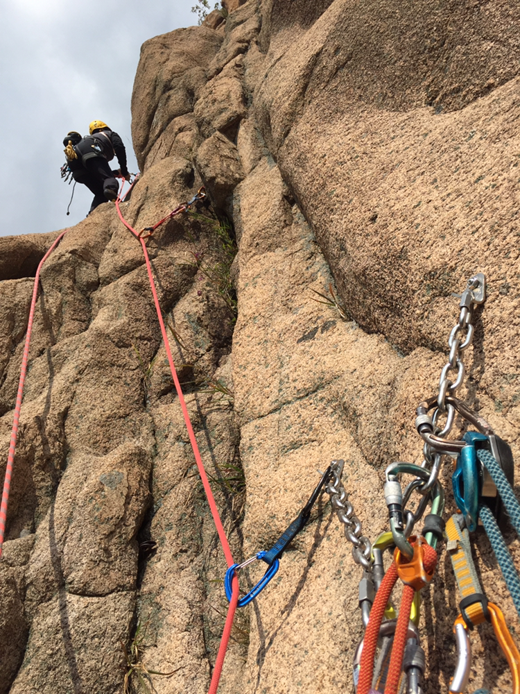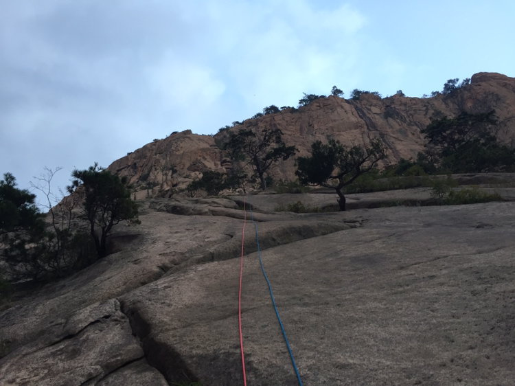 누구나 비슷하게 느끼는 어려운 구간을 만나거나 발디딤이 유독 겁나는 곳에서 나는 내 손과 발을 그보다 더 큰 마음으로 딛고 일어설 생각을 하지 않고 선배님들이 설치해둔 온갖 퀵이며 슬링을 모두 부여잡고 그 구간을 통과해버렸다.