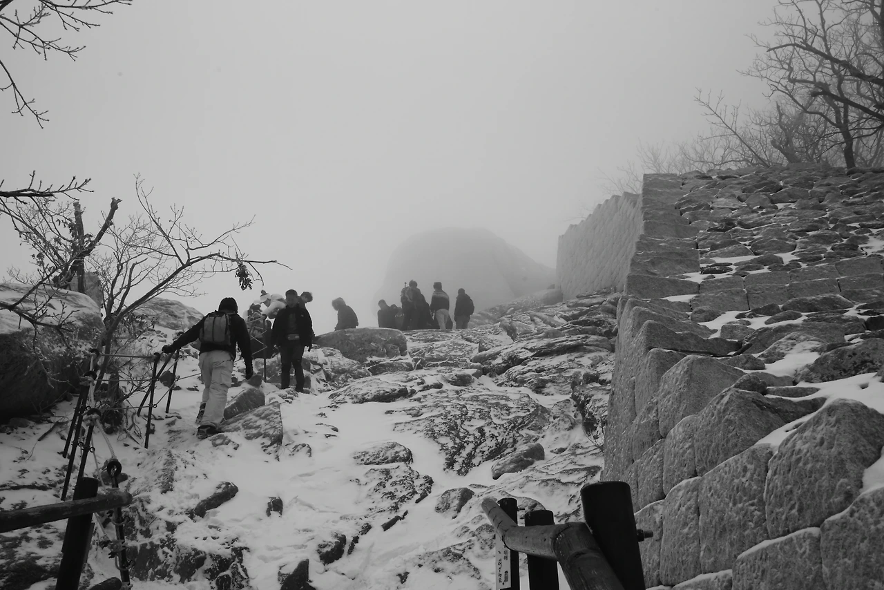 백운대를 향하는 길 위로 간간히 눈발이 날렸다.