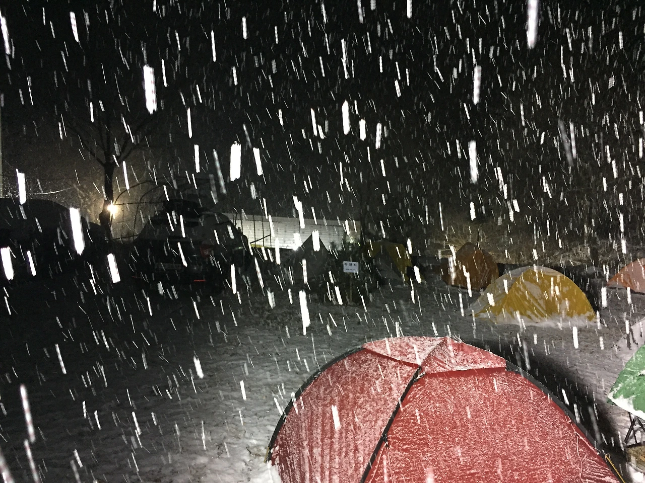 화합의 밤을 환영하는 듯 홍천 야영장에 쏟아지는 눈발이 걸음을 붙들었다.