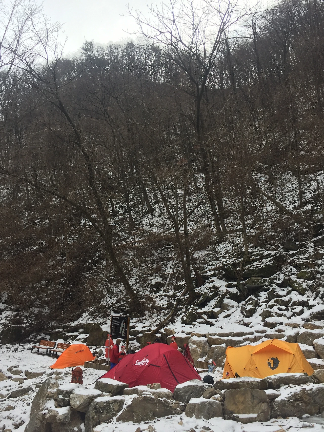 야영지에 도착하여 텐트칠 곳부터 찾았다.