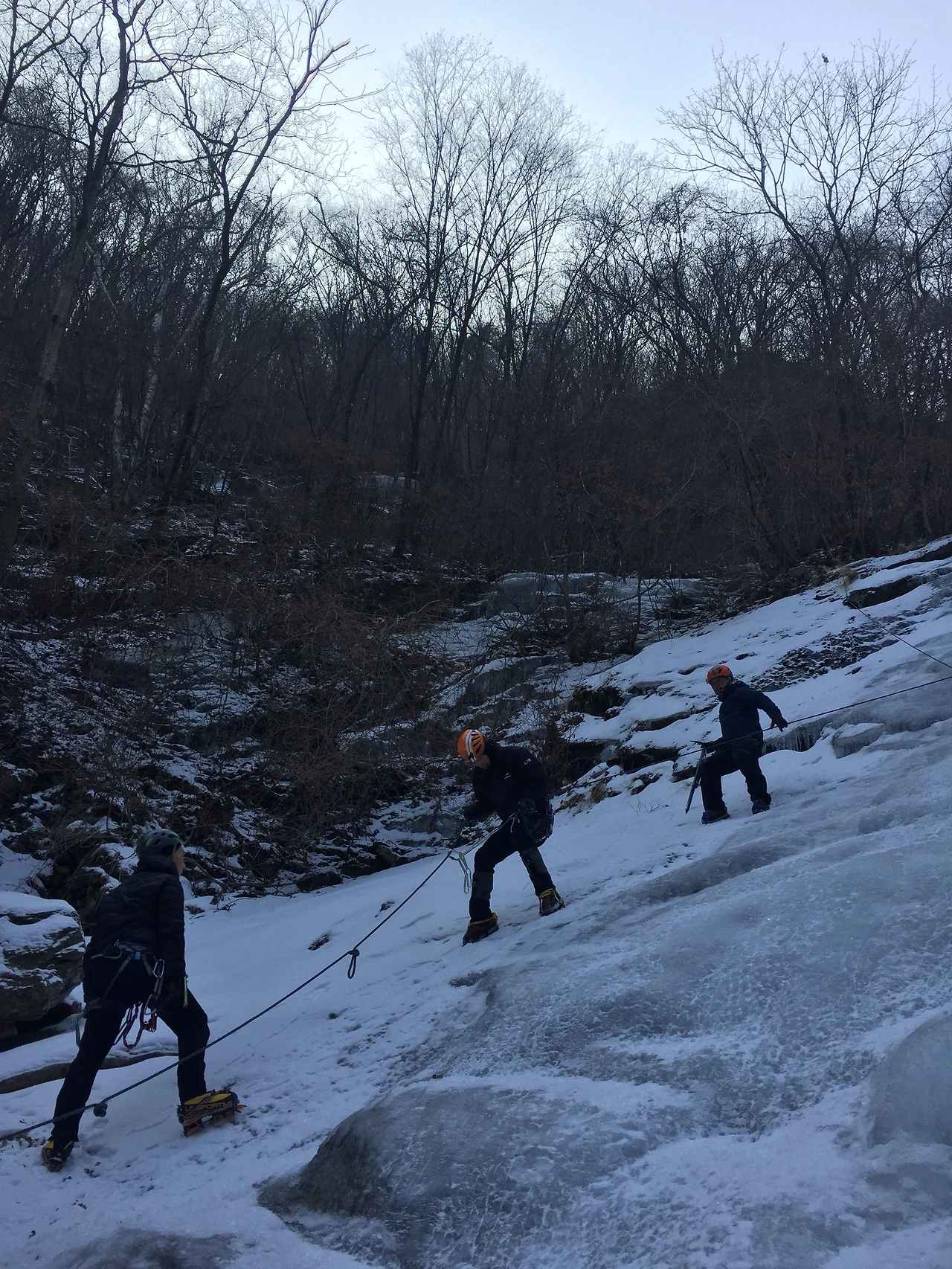 아침부터 마주한 빙벽 어센딩은 더 어렵게 느껴졌다.