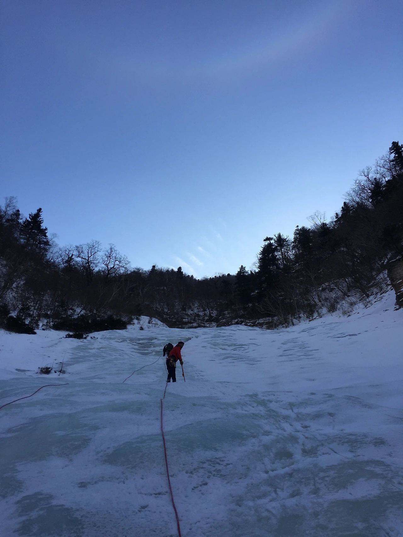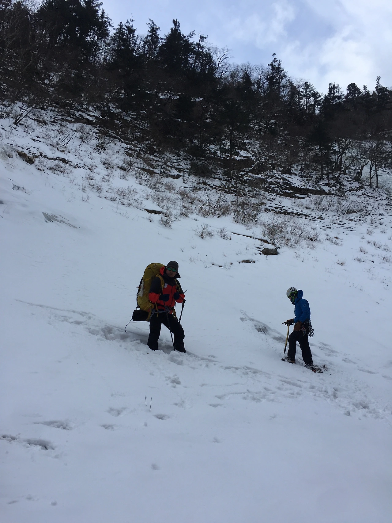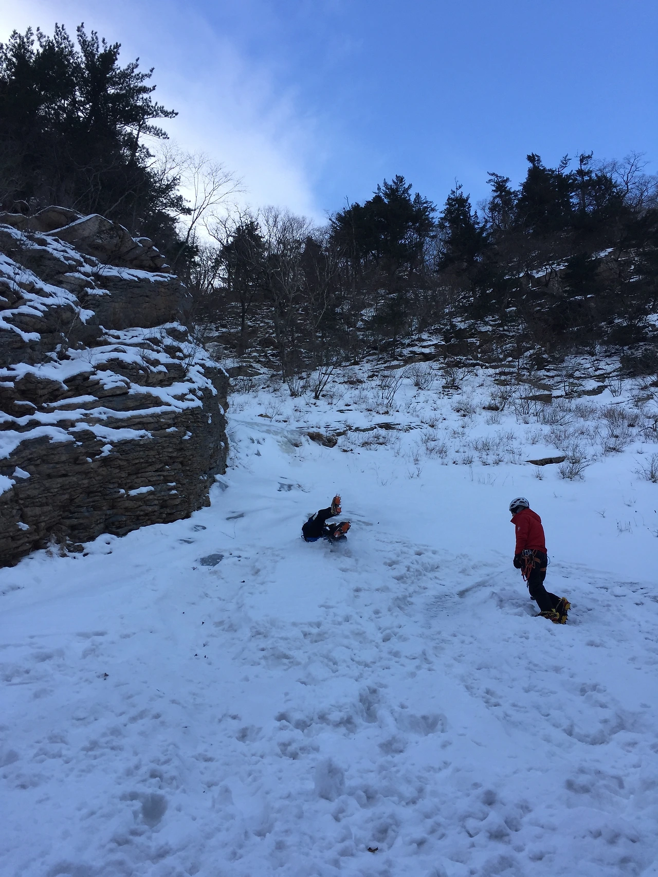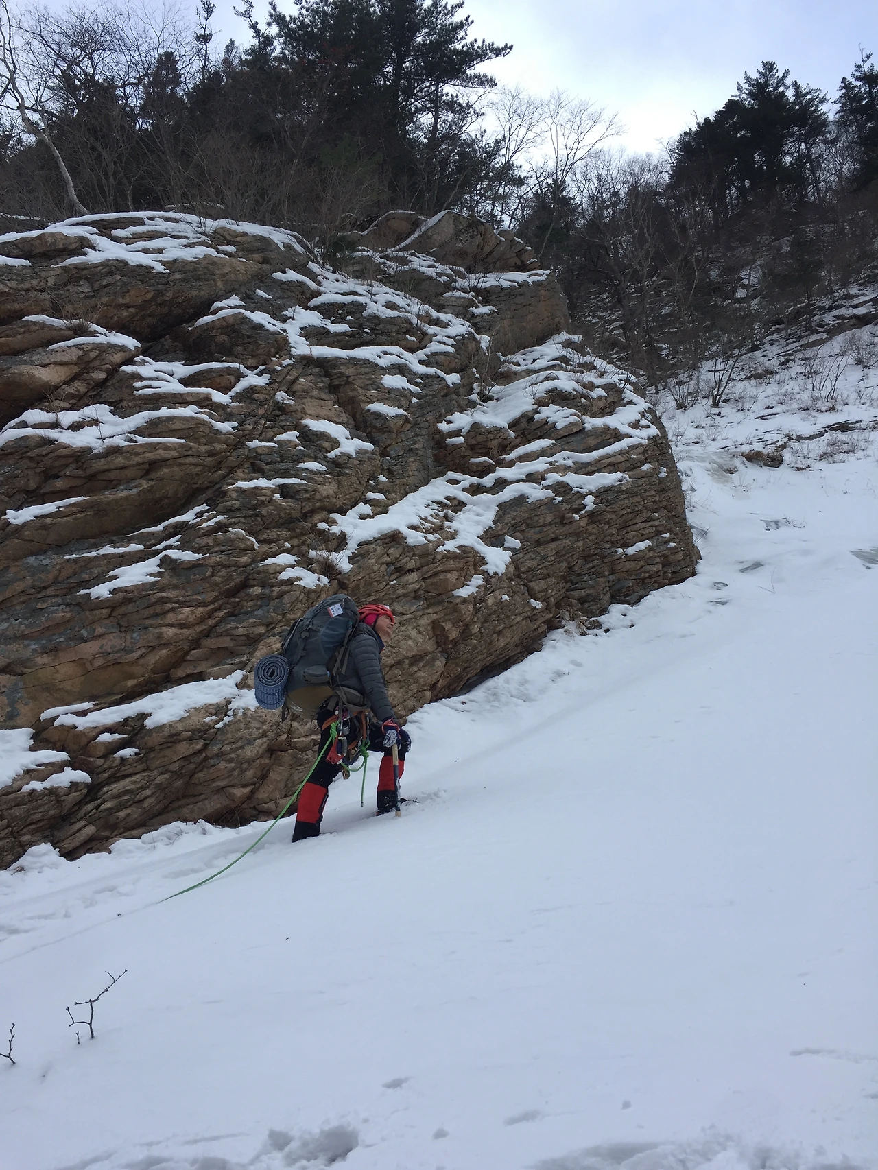 미끄러운 곳에서 잘 들리지도 않는 빙벽화를 위로 쳐들어야 하는 활락정지와 푹푹 빠지는 눈 위에서 추락 훈련, 어센딩을 하며 스크루 박고 휴식 취하기, 방향 전환하며 걷기.