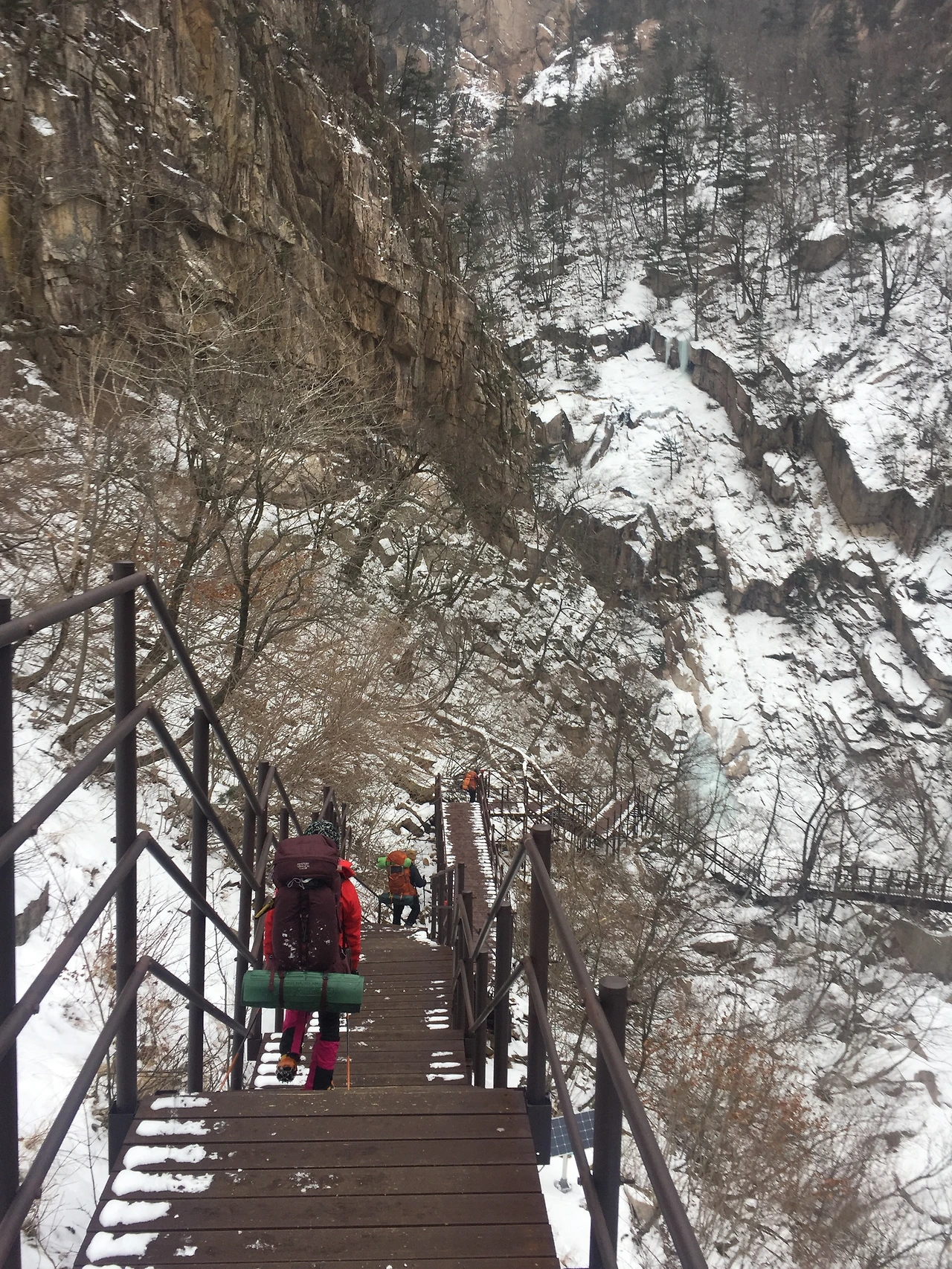 생각보다 눈이 없어 걷는 것이 쉽지 않겠구나 예상은 했으나 온통 굵직한 바위들이라 발이 금세 피곤해졌다.