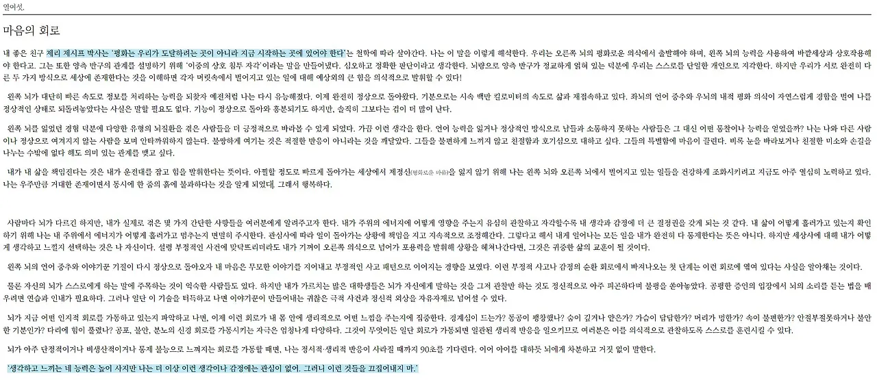 원제목 '뇌졸중이 내게 안겨준 통찰 My Stroke of Insight' 그 자체인 책이다.