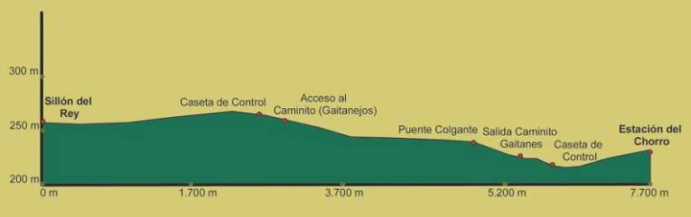Maria Zambrano 역 (말라가 시내) -> El chorro역 (약 50분 소요); 이 구간은 하루에 총 4번밖에 운행하지 않는 단점이 있다. 그리고 El chorro역에서 Maria Zambrano역으로 돌아오는 열차 시간이 상당히 어중간하다 (13시와 21시…, 자세한 시간표는 렌페(스페인 기차 홈페이지)에서 참고할 것). 따라서 말라가 시내에서 Caminito del Rey로 가는 것은 쉬우나, Caminito del Rey에서 시내로 돌아오는 계획이 어중간하게 보인다.