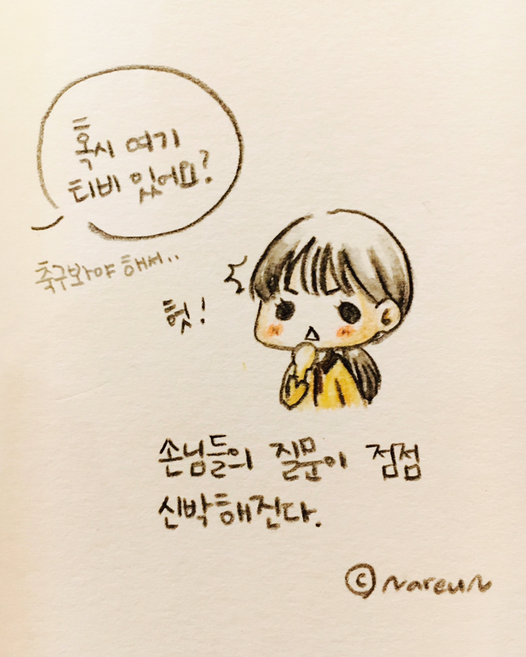 오늘 손님이 티비가 있냐고 물어봤어요티비 있는 카페가 있는지 궁금해졌어요