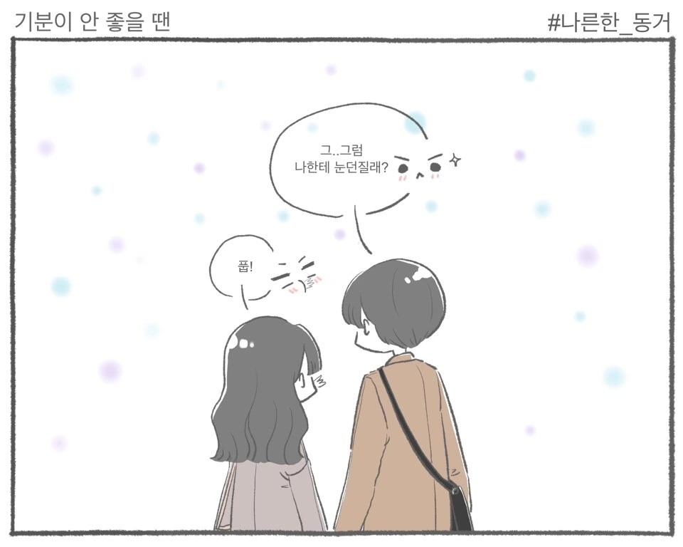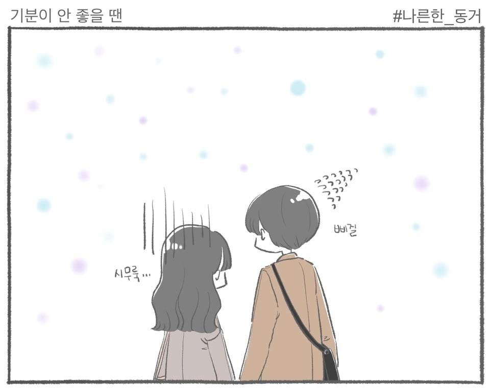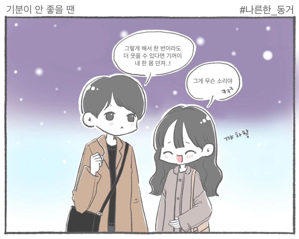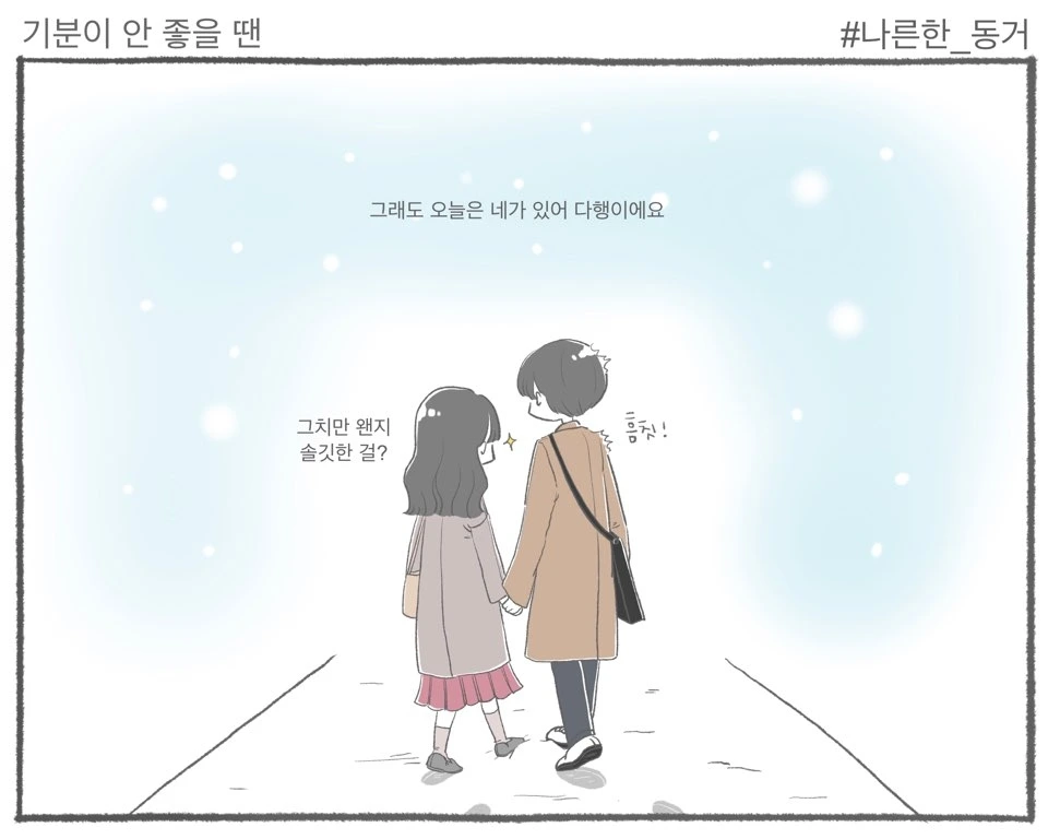 제가 기분이 안 좋을 땐 K가 보살펴줍니다.물론 K가 기분이 안 좋을 땐 제가 보살펴줘요.