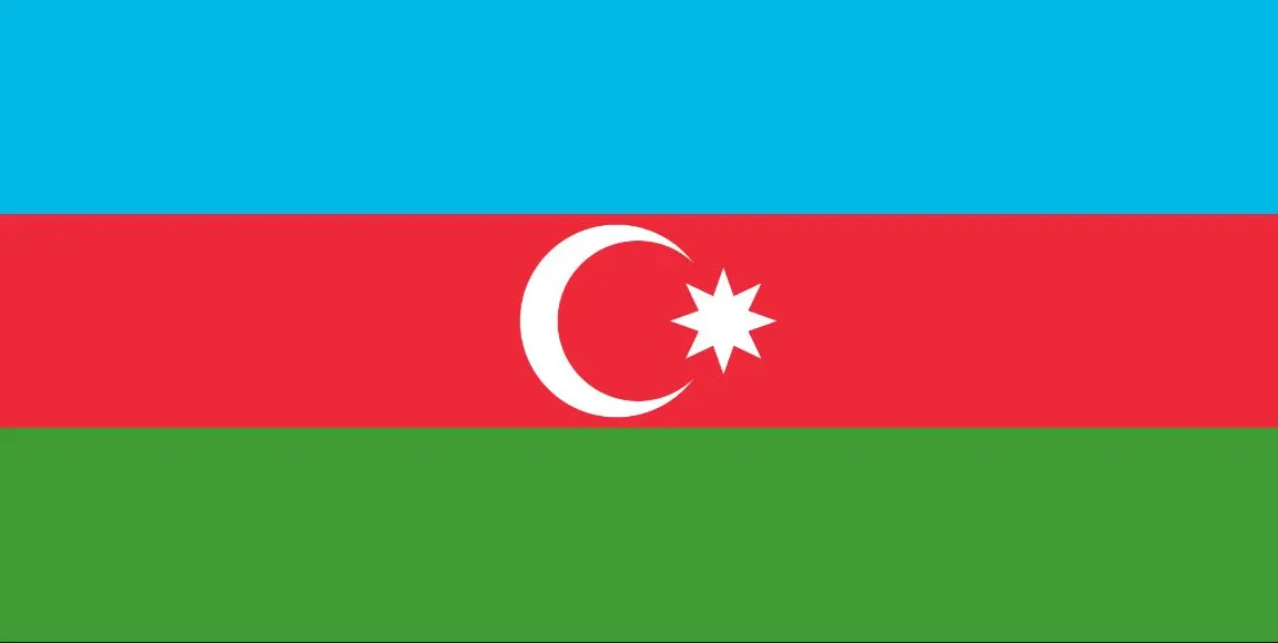 아제르바이잔 국기는 파랑, 빨강, 초록색 바탕을 배경으로 중앙에 하얀 초승달과 팔각의 별이 그려져있습니다. 파랑은 투르크족, 빨강은 진보, 녹색은 이슬람을 나타내며 초승달은 이슬람의 대표적인 상징입니다. 팔각의 별은 '아제르바이잔'이 아랍어로 8글자이기 때문이라는 설이 가장 널리 받아들여지고 있습니다.