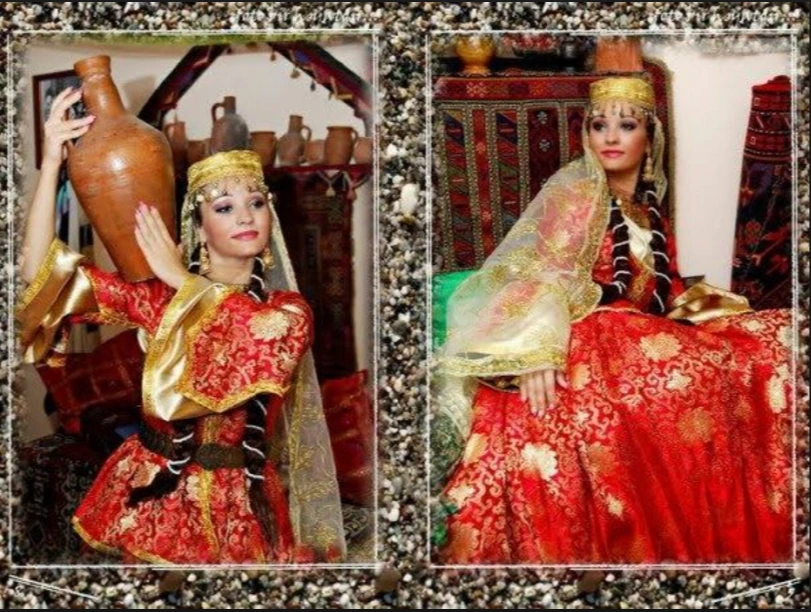사진설명: 고대 페르시아 왕조의 아제르바이잔전통의상을 입고 포즈를취하는 아제르바이잔 여성. (출처: Painterst)