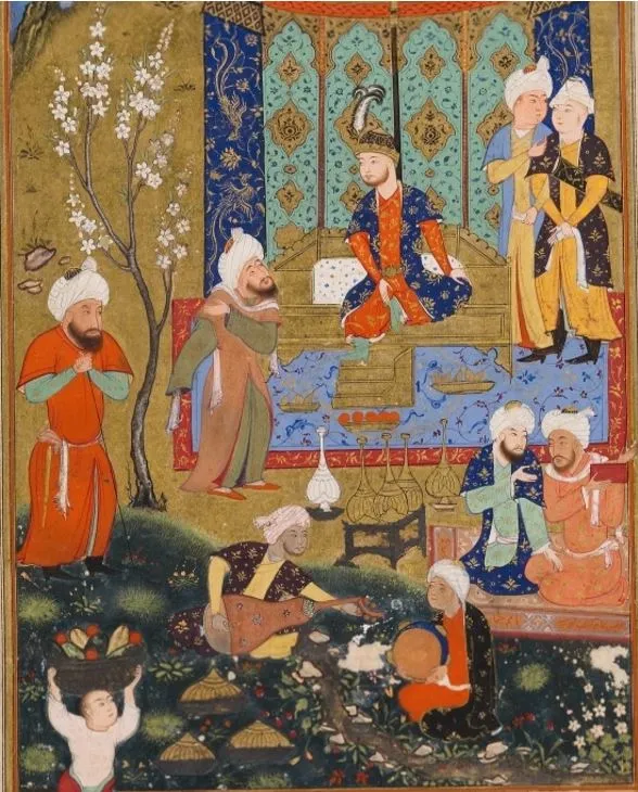 사진설명: 시인, 음악가 등이 함께 하는 페르시아왕족의 피크닉 모습. (출처: 옥스포드 대학)