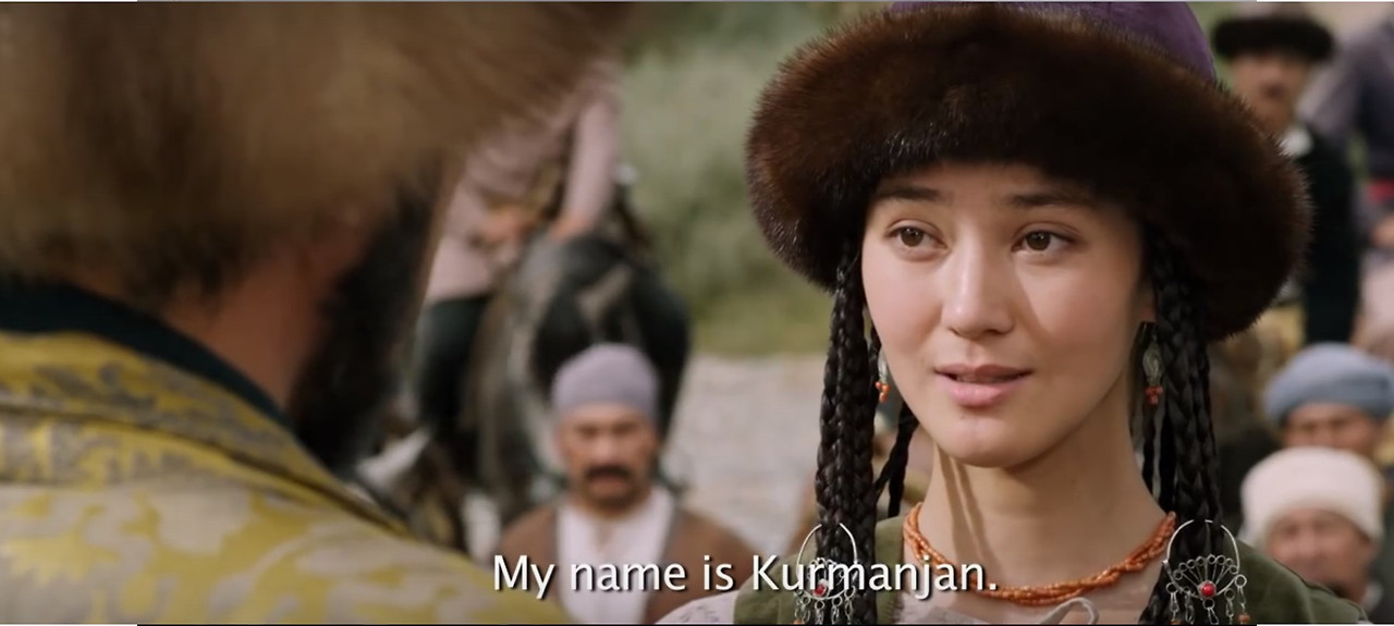 쿠르만잔 다트카를 다룬 영화 Queen of the Mountains(2014)의 한 장면. 키르기즈스탄에서 보기 드문 대규모 예산의 영화로 2014년 몬트리올 국제영화제에 초청받으며 비평가들에게 큰 호평을 받았습니다.