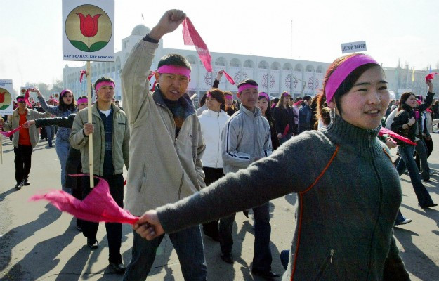 2005년 3월24ㄹ 발발한 튤립혁명에 참가한 시민들 (사진출처: AFP/Getty)