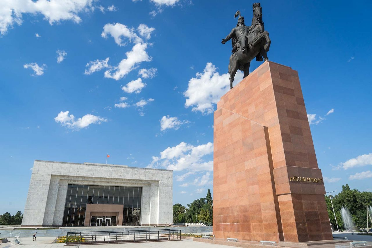 키르기즈스탄 국가명의 유래는 옛 터키어로 ‘우리는 40’ 이라는 뜻의 ‘키르기즈’에서 비롯되었는데 이는 키르기즈스탄의 민족적 영웅 ‘마나스 (Manas)’가 이끈 40개 부족이란 뜻입니다. (참고로 ‘스탄’은 옛 페르시아어로 국가라는 의미로 예를 들어 아프가니스탄은 ‘아프가니’ 사람들의 국가라는 뜻입니다). 마나스는 키르기즈 민족을 결집시켜 8-9세기 경에 중앙아시아를 지배했던 위구르 제국을 멸망시킨 전설의 용사로, 마나스 국제공항, 수도 비쉬켁의 마나스 광장, 필하모닉 국립극장 앞의 거대한 마나스 동상 등 마나스라는 이름을 키르기즈스탄 곳곳에서 쉽게 발견할 수 있습니다.