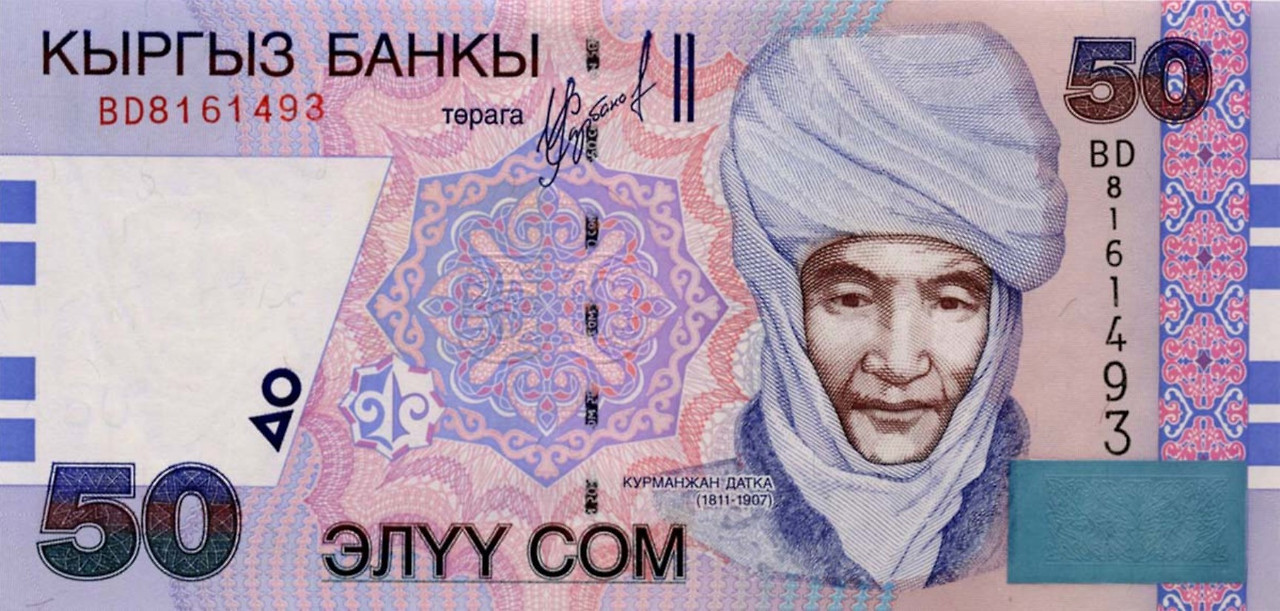 키르기즈스탄 50솜 (Som) 지폐에 그려진 쿠르만잔-다트카(Kurmanjan-Datka). 이슬람 국가의 화폐에서 보기 드문 여성 지도자의 초상화입니다. (사진출처: banknoteworld.it)