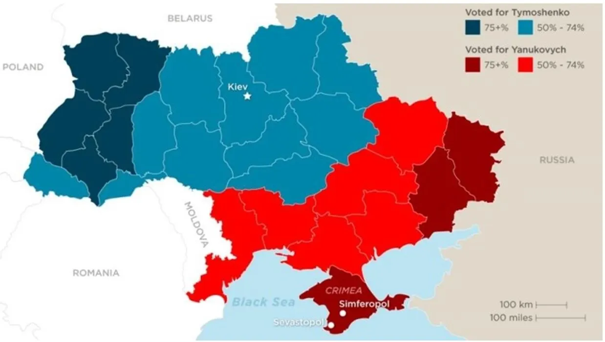 이 후 유셴코는 2010년에 치뤄진 우크라이나 대통령 선거에 재출마하였으나 친EU와 친러 계통간의 마찰로 인한 불안한 국정에 대한 책임으로 2010년 선거에서는 야누코비치에게 패배합니다. 이 후 러시아와의 경제적 무역 이점과 친러 외교관계를 바탕으로 야누코비치가 2013년과 2014년 EU와의 조약을 거부하자 우크라이나 전역에 유럽통합(EU)에 지지하는 유로마이단 (Euromaidan) 데모가 일어납니다. 결국 2014년 2월 우크라이나 의회는 야누코비치를 탄핵하기로 결정하는데 이를 '2014년 우크라이나 혁명'이라고 합니다. 그러나 친러 성향의 동부는 이를 반대하고 돈바스 지역은 우크라이나로부터의 독립을 선언하며 곧바로 우크라이나 정부와 전쟁을 시작합니다.