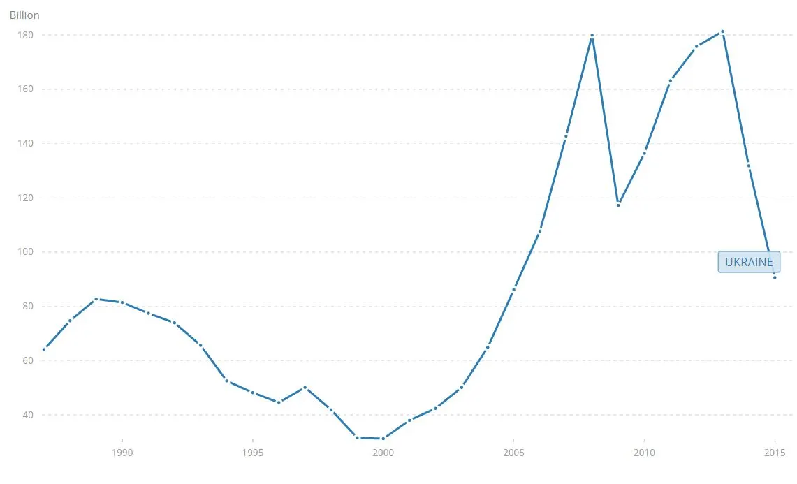 체르노빌 사건이 있은 1980년대 후반부터 우크라이나는 소련의 지배에 반감을 품게 되고 1989년부터 독립 운동이 전개됩니다. 이는 소련 공산정권을 약화시키는 일부 계기가 되어 결국 1991년 소련의 해체와 동시에 우크라이나는 독립을 맞이하게 됩니다. 이 후 자본주의 체제변환으로 인한 부작용으로 인해 높은 인플레이션과 물자 부족 등의 경제침체를 겪게 됩니다. 그러나 2000년부터 금속, 화학품, 농산물 등의 수출이 약 50%이상 증가되면서 우크라이나의 GDP는 계속 성장추세를 보여 2005년에는 빈곤률이 8%로 떨어지는 등 전 국민의 생활수준이 크게 향상되기도 하였습니다. 그러나 2008년 금융위기이후 자금 부족으로 인해 경제 성장이 둔화되고 2010년에 금속 수출품의 가격 상승으로 일시적으로 경제가 회복되지만 이 후 가장 큰 무역상대국인 러시아와의 마찰로 다시 성장이 저하되면서 현재는 우크라이나 통화 흐브리냐(hryvnia)의 가치 폭락과 내전으로 인해 국제사회의 경제원조를 받고 있는 상황입니다.