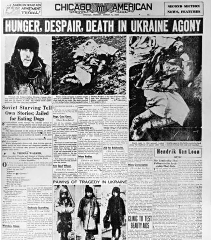 사진 설명: 우크라이나 대기근 당시 미국신문에 실린 관련 기사 (출처:http://ukraineholodomorck.weebly.com/)