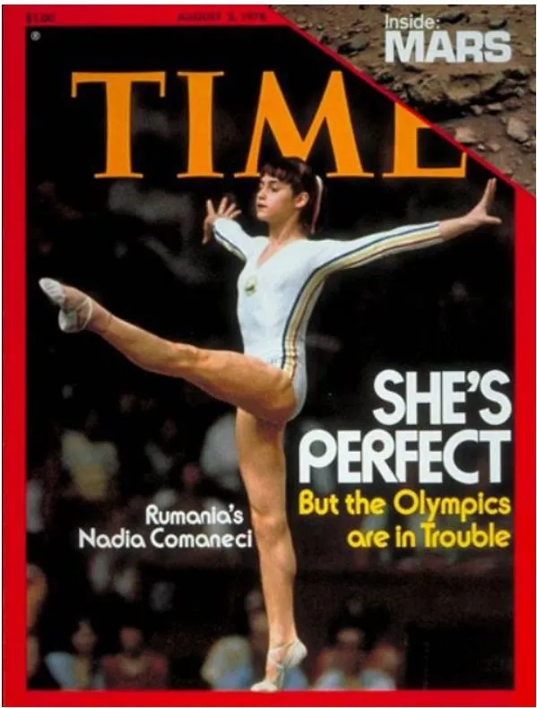사진설명: 체조경기 사상 최초로 10점 만점을 획득한 전설적인 루마니아 선수 나디아 코마네치 (1961- 현재). 미국으로 망명했으나 슬럼프와 체중 조절 실패로 인해 힘든 시기를 겪고 현재는 미국에서 초청 연사로 활동하고 있습니다.