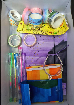 포장지마다 색도 다르고 문양도 달라서 너무 예뻤기에 막 뜯을 수 없었다. 게다가 세상 유일무이한 포장지이니... 하나씩 곱게 뜯어보니, 그 안에는 예쁜 무늬의 마스킹 테이프, 형광색 볼펜, 스티커, 다이어리, 팔찌 등이 들어있었다. 진짜로 너무나 내가 좋아하는 것들이고 마음에 들었다. 그리고 무엇보다 이 모든 것을 엄마를 생각하며 하나씩 고르고 포장지를 만들고, 싸는 모습을 생각하면서 행복했다.