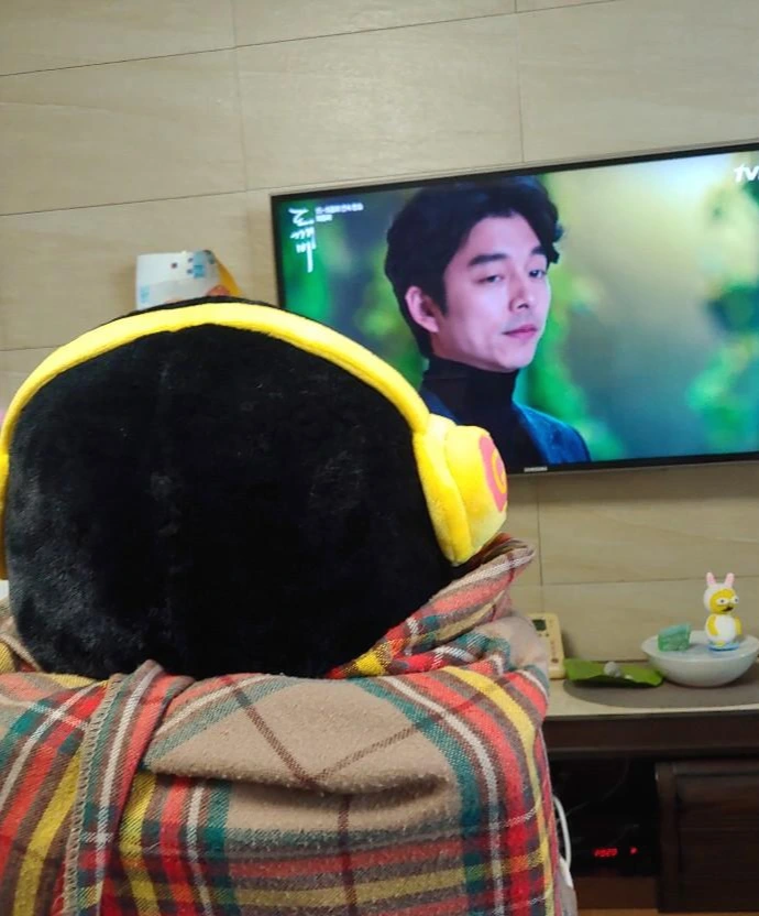 재방송하는 드라마 '도깨비'를 보고 있는 펭수의 뒷모습.. 나도 아이도 그냥 이렇게 놀고만 싶다.