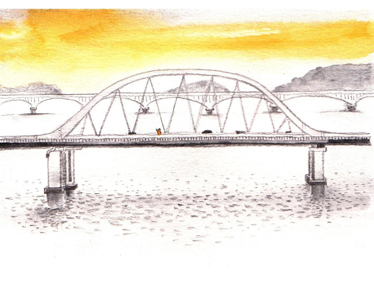 나는 작가님의 <안녕> 퍼포먼스를 보기 위해 합정과 당산 사이를 세 번이나 왔다 갔다 해야 했다. 처음에는 양화대교의 방향을 반대편으로 착각해서, 두 번째는 작가님의 모습을 발견하지 못해서 다시 당산역 방향으로 향하는 계단을 오르락내리락하며 재차 환승했다. 두 번의 실패 끝에야 봄로야 작가님을 통해 다리의 중간쯤, 빨간 점퍼를 입은듯한 형상이 김혜연 작가님이란 것을 전달받았고, 마침내 작가님을 찾을 수 있었다. 처음엔 다리 위에 붉고 조막만 한 작은 점이 있는 것 같다고 생각했는데 그 작은 점이 작가님이라 하니, 형체가 더욱 또렷이 보이는 듯했다. 노을 지는 풍경을 뒤로한 채 작가님의 높이 치켜든 한쪽 팔이 씩씩하게 좌우로 움직였다. 나는 작가님의 모습이 더 이상 보이지 않을 때까지, 그 모습을 좇으며 작가님이 서 계신 방향을 향해 작게 손을 흔들었다.