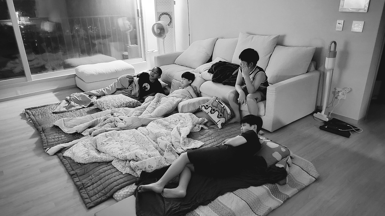 경쾌한 미소만 짓고 있는다고 훌륭한 호스트가 되는 건 아니었다. 세탁기를 돌리고, 건조기로 옮기고, 뜨거운 열이 남아있는 마른빨래를 꺼내고, 이건 누구 옷인지 아이들에게 확인을 하고, 우리 아이 속옷 말고는 만져본 적 없는 어색함을 극복하며 조금 더 큰 사이즈인 팬티를 개고, 갠 옷가지는 한 구석에 정리를 하고, 그 위에는 이름 적은 포스트잇을 붙여놓고, 밑에는 예민한 아저씨가 사니 쿵쿵대지 말라 주의를 주고, 닌텐도 하자, TV 보자, 실랑이는 아이들에게 솔로몬의 지혜를 발휘하고("지금은 닌텐도를 하고, 자기 전 누워서 TV를 보는 게 완벽하지 않을까?"), "9시 30분에 눕자?", "9시 30분이요?", "너네 9시 반에 누워도 수다 떠느라고 10시 넘어서 잘 게 뻔하거든?", "우와, 어머니, 예리하시네요!"와 같은 대화를 나누고, 배는 고프지 않은지, 덥거나 춥지는 않은지 호스트 아주머니 역할은 다채로웠다. 내일 아침은 유부초밥이라는 공지에 유부초밥 좋아하지 않는다는 여론이 나와도 당황함을 감춘 채, 그럼 유부초밥뿐만 아니라 시리얼, 우유, 빵을 함께 준비할 테니 뷔페식으로 먹으라는 임기응변도 필요했다.