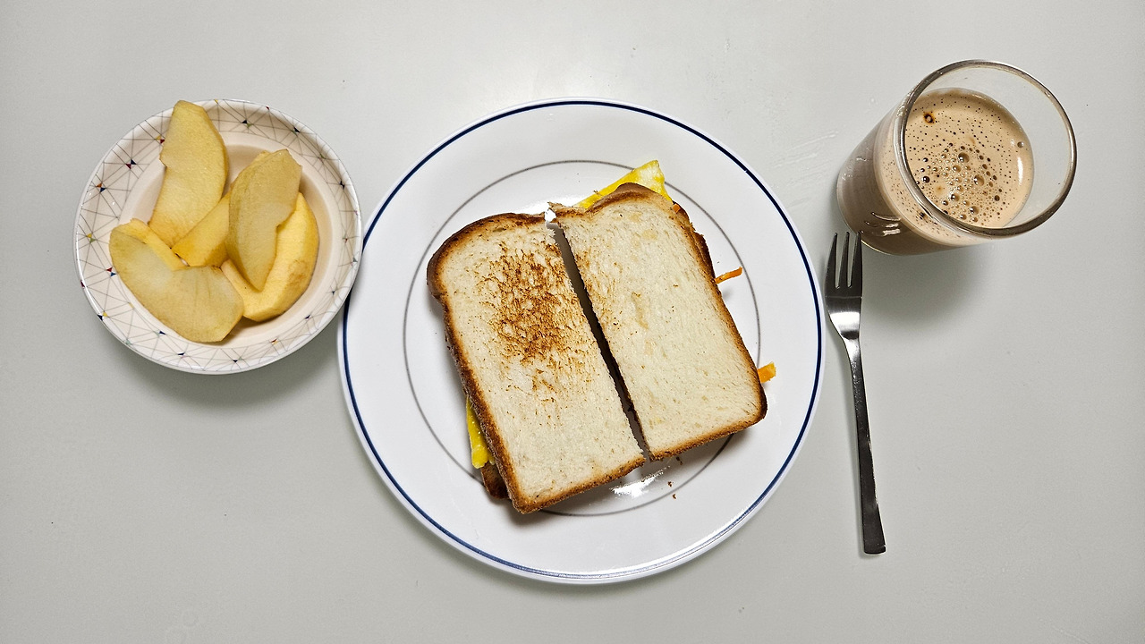 대단한 아침식사는 아니지만 과일을 깎고, 미리 쪄놓은 고구마 껍질을 까고, 라떼 믹스를 한잔 타서 식탁에 앉았다. 아이들을 등교시킨 후 누구의 방해도 받지 않고 이렇게 차린 식탁에 앉으니 소소한 행복감이 차오른다. 내가 먹을 것을 준비하고 맛있게 먹는 것이 이렇게 기분 좋은 일이었지, 깨닫는다.