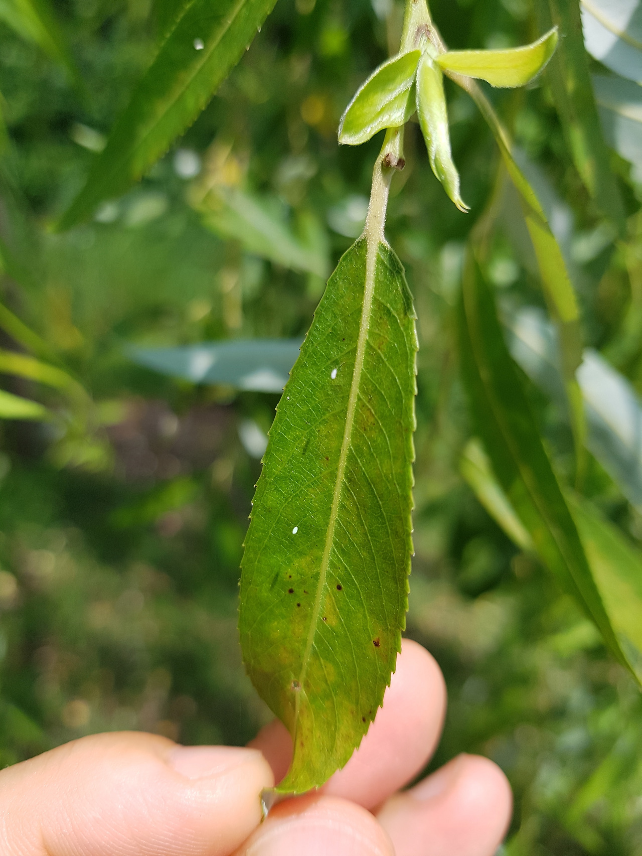 수양버들 잎에 매달려있던 풀잠자리 알을 발견했다.