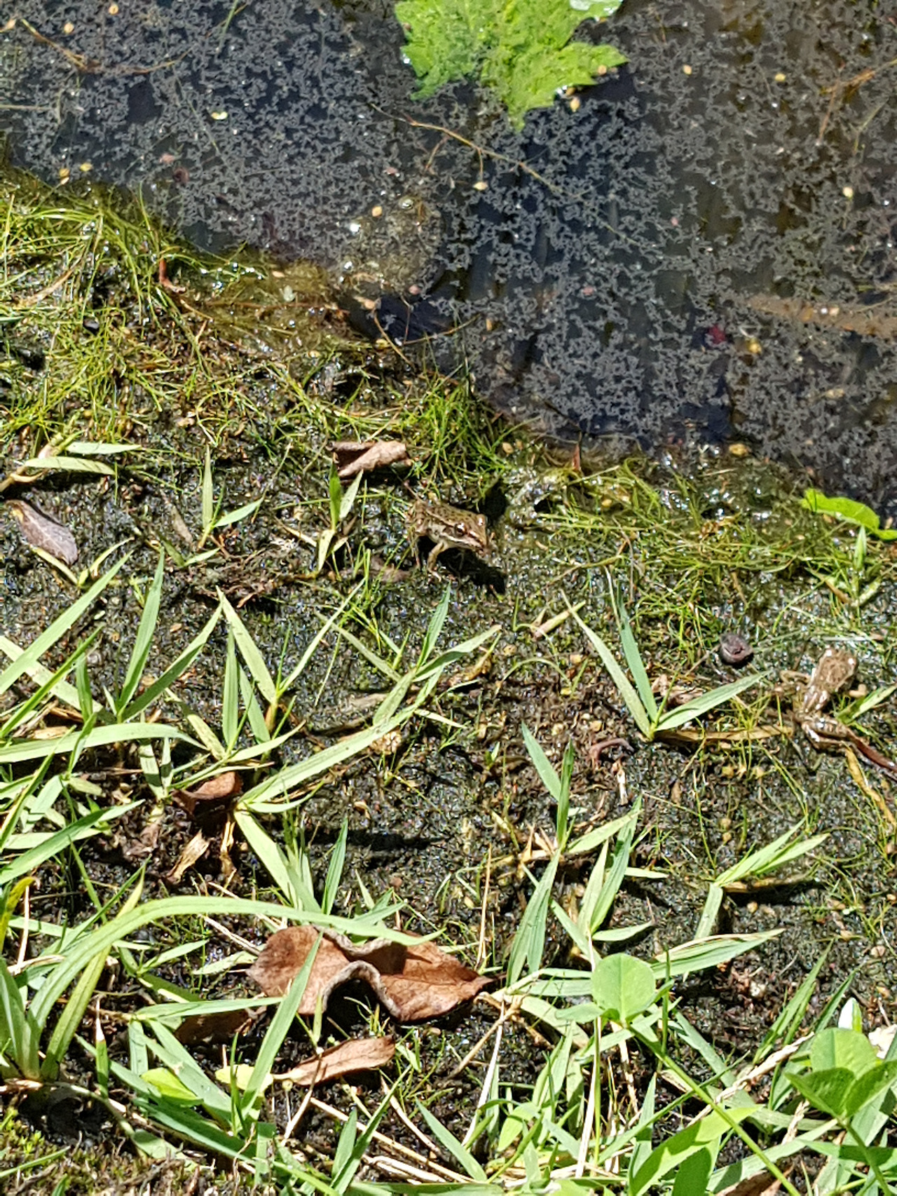 당시에는 몰랐는데 집에 와서 다시 사진을 보니 개구리 뒤에 있는 까만 것은 올챙이가 아닐까 한다.