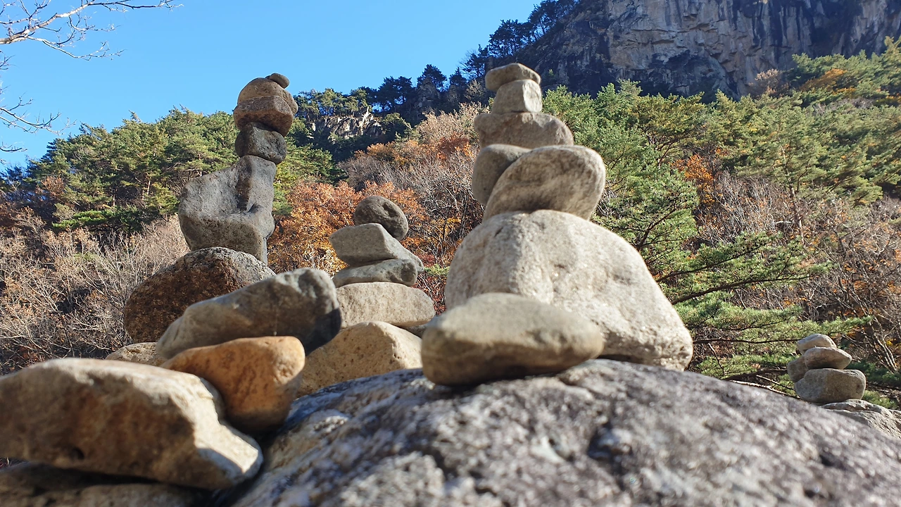 사연이 있어보이는 돌탑들. 어떤 소망이 깃들어있을까.