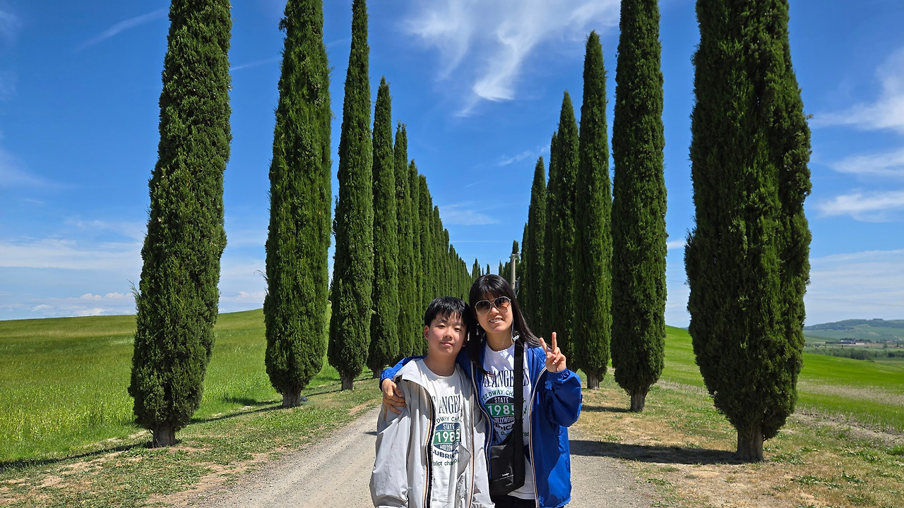 새벽에 일찍 일어나서 로마부터 피렌체까지 천천히 이동하는 투어를 하러 갔다. 버스를 타고 이동하면서 중간에 내려서 관광했다. 첫 번째에는 풍경이 좋은 전망대에 갔다. 정말로 멋있었다. 두 번째에는 몬테풀치아노에 갔다. 거기서 점심으로 라비올리, 스테이크, 피치파스타를 먹었는데 엄마가 맛있다면서 와인을 2잔이나 먹어서 힘들었다. 그리고 발도르챠 평원에 갔는데 거기서 풍경이 너무 예뻐 엄마가 신나했다. 마지막엔 트램을 타고 피렌체에 도착했다. 긴 투어였지만 재밌었다.