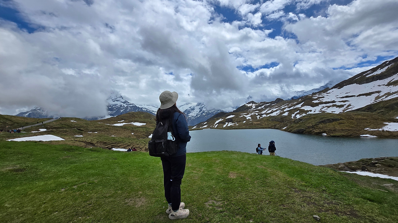 -그린델발트 피르스트에 갔다. 가서 바흐알프제 호수에 갔다. 힘들게 갔는데 날씨가 그다지 좋지 않았다. 거기서 도시락을 먹으며 쉬었다. 그전에 먹었던 감자튀김이 따뜻해서 더 먹기 편했다. 호수에서 돌아와 패러글라이딩을 타러 갔다. 인생 첫 패러글라이딩이라 긴장됐다. 출발하려는데 자꾸 넘어져서 힘들었다. 하늘에 올라가 사진도 찍고 너무 재미있었다.