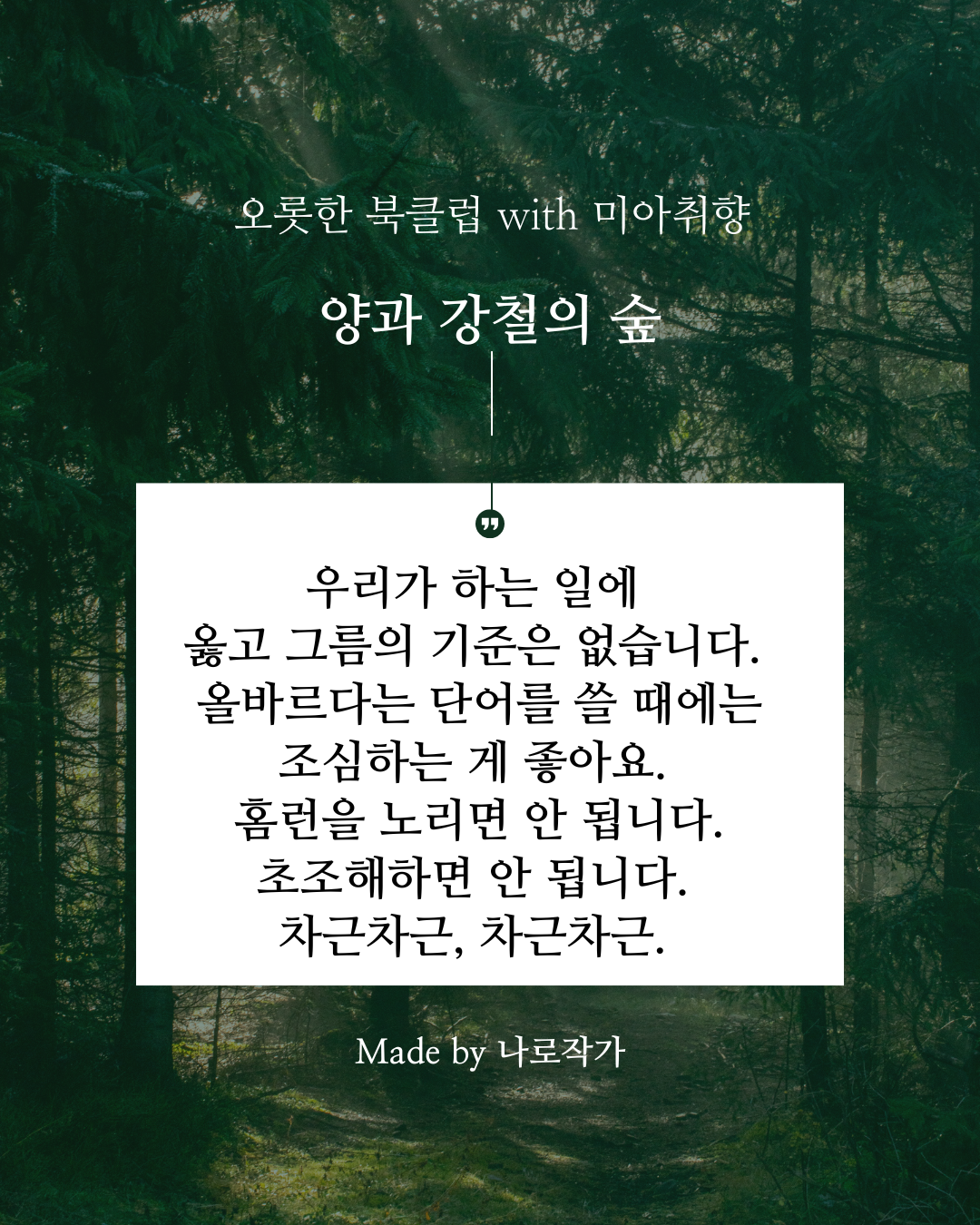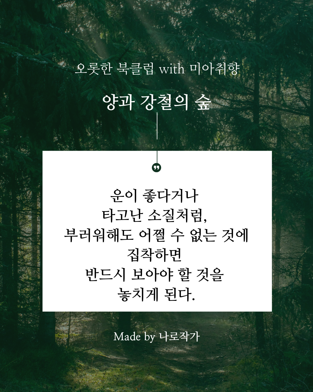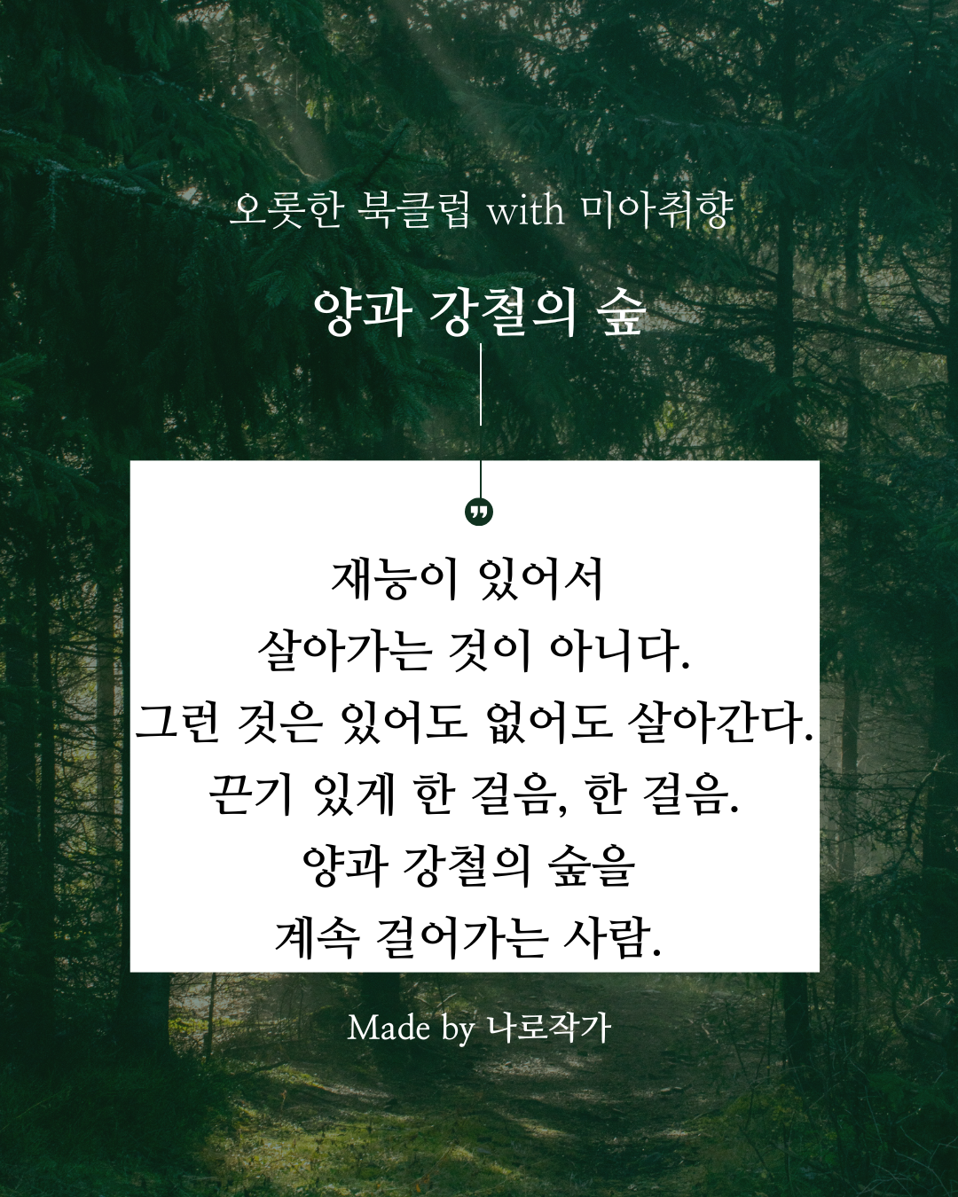 자신의 양과 강철의 숲을 지나고 있는