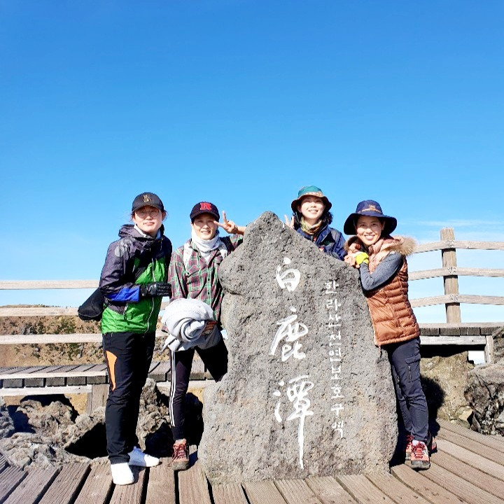 2019. 10. 27. 독서모임 멤버들과 백록담에서. 히말라야 원정대를 꾸린 이후 독서모임 멤버가 늘어 4명이 한라산에 올랐다.