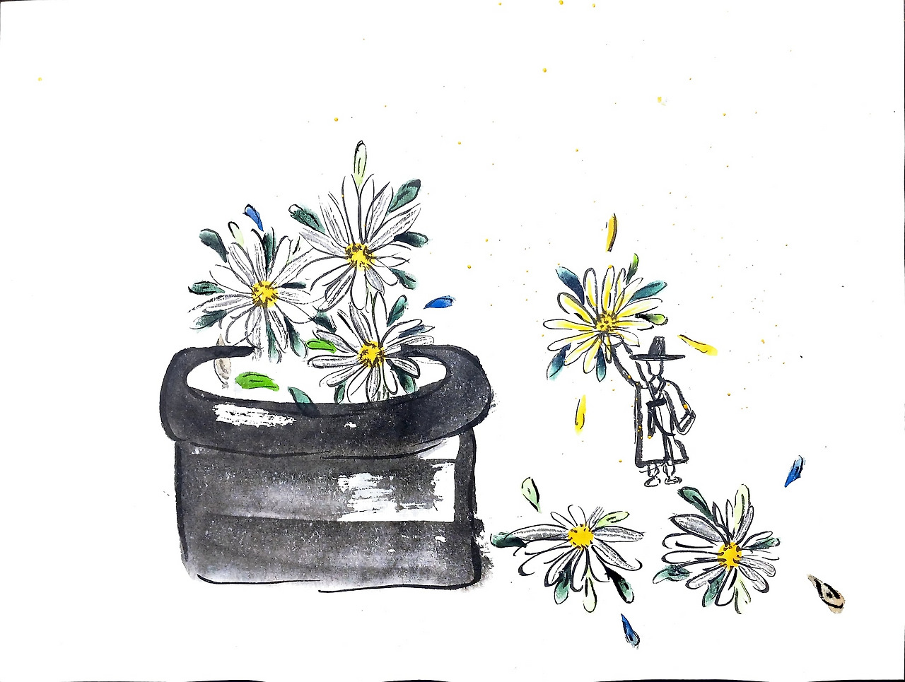 노란 국화꽃에서 가느다란 꽃잎들이 바람에 후루룩 날려갔다.