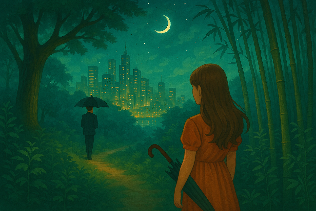 나는 대나무가 섞여있는 어느 초원의 숲을 향해 걸었다.