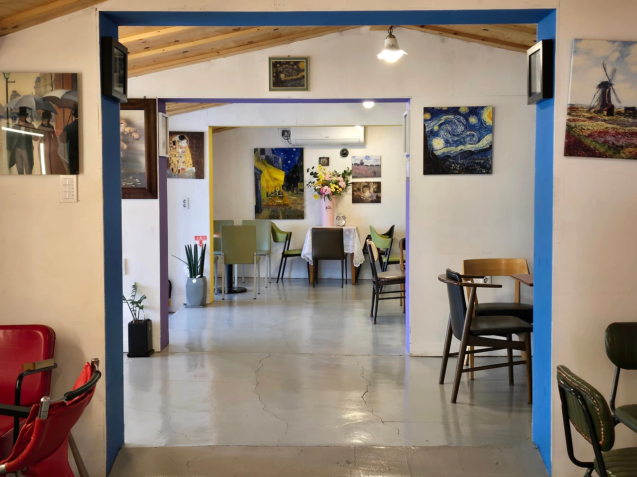 각종 명화들이 걸려 있다. 흰여울마을과는 전혀 어울리지 않는...카페 이름은 변호인이다.
