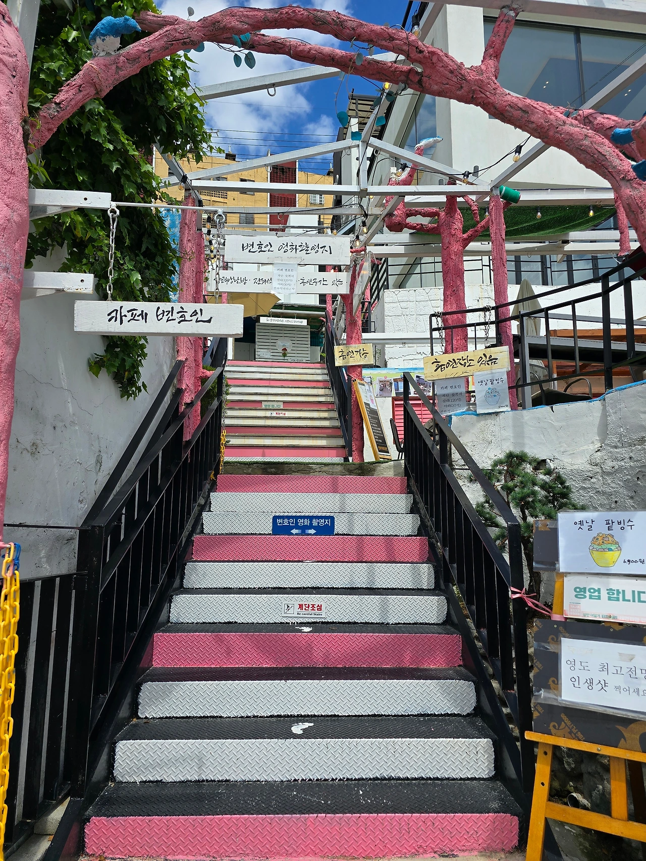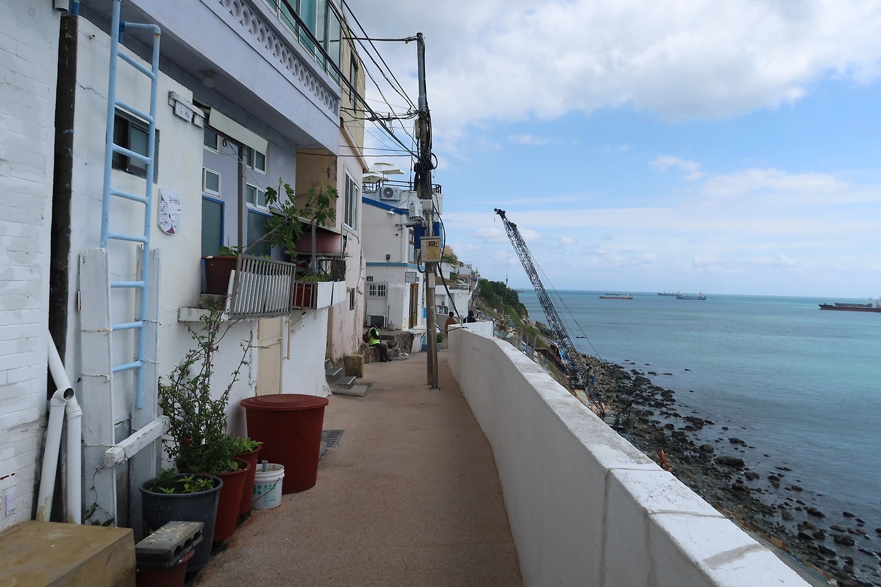 흰여울마을에도 어김없이 외부 자본들이 들어오기 시작했다. 그 좁은 비탈에 어찌 터를 냈는지 3~4층 규모의 번듯한 카페들이 세련된 몸집으로 들앉았다. 마땅한 주차장 한 폭 갖지 못하는 주민들의 살림살이와 대조적이다. 그러나 골목길 따라 늘어선 각종 샵들은 여느 관광지의 그것들과는 다르다. 가게틀마다 주차장을 만들지 못하는 지형적 특징은 결국 이들 가게들의 성장에 발목을 잡을 것이다. 한편으로는 그게 흰여울마을의 옛 모습을 그대로 지킬 수 있는 이유이기도 할 것이다. 묘한 역설의 동네다.
