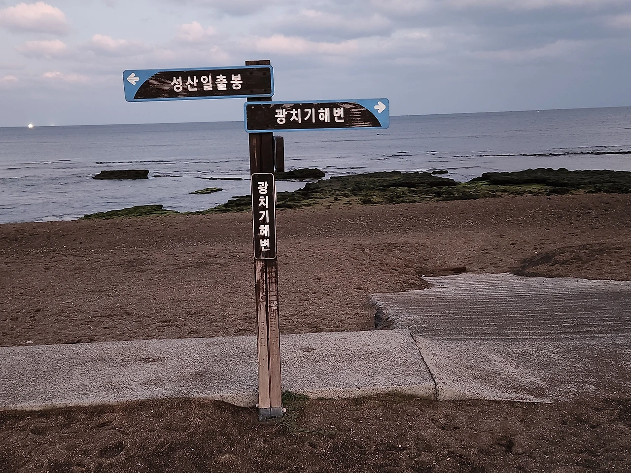 종달리를 벗어나면 긴 해안 도로가 나온다. 바다가 왼편에서 찰랑거린다. 오래 그 길을 걷는다. 해가 지는 것도 거기에 있고 고급 승용차가 너무 많다는 사실도 거기에서 알 수 있다. 걷는 만큼 성산 일출봉이 가까워진다. 우도에도 가보고 싶다는 생각에 바다에다 줄을 긋는다. 저기에서 저기는 집게와 엄지로 4cm 반.