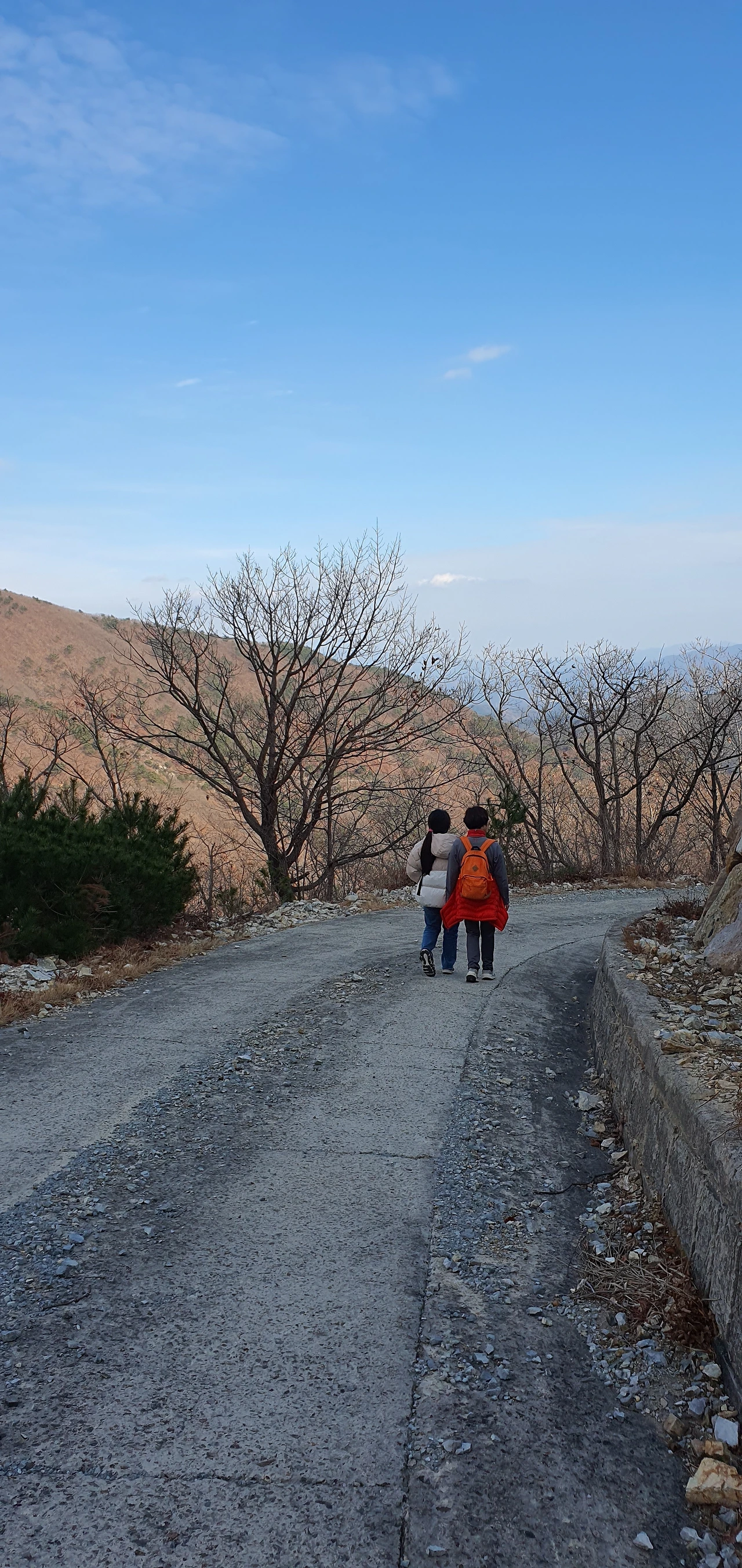 성심원까지 걷고 돌아섰던 날이 지난 10월 10일. 한 달 열흘 만에 다시 그 자리에 섰다. 이렇게 빨리 찾아올지 몰랐는데 운이 좋다고밖에. 서늘한 기운을 손끝으로 만지작거리면서 좋은 날에, 좋은 날에······ 흥이 났다. 몸이 말을 걸어오는 날이었다. 나란히 선 세 사람 키가 고만고만하다. 웃고 장난치는 틈을 찍었다. 세 사람 모두 마스크에 얼굴이 가리고 눈만 나왔다. 마스크를 끼고 살았던 때가 있었다고 이 사진이 증명할 것이다. 강이는 긴 머리가 유난히 찰랑거렸다. 산이는 어떤 음악을 주로 들을까. 양쪽 귀에 저렇게 꽂고 다녀도 괜찮을까. 볕이 좋았다. 빨래를 널어 말리고 싶을 만큼 햇살이 맑았다.