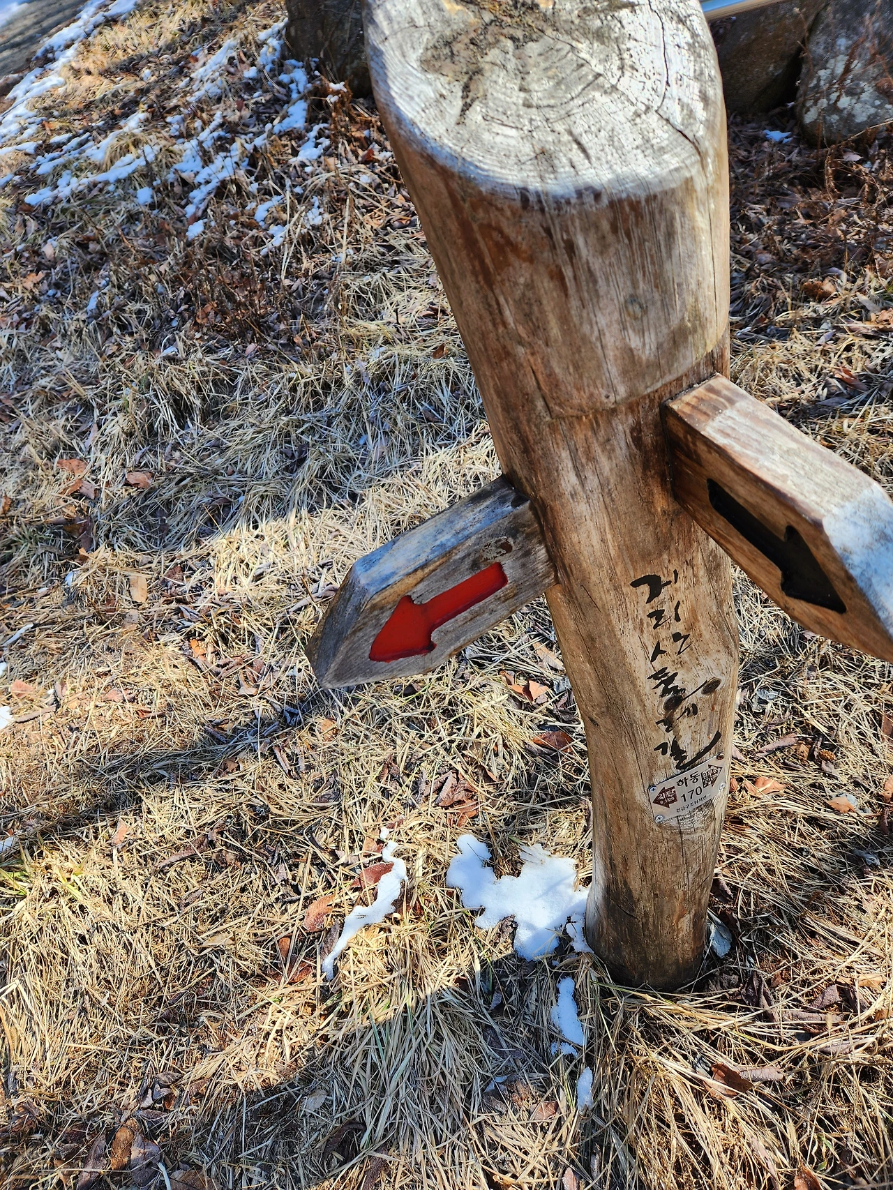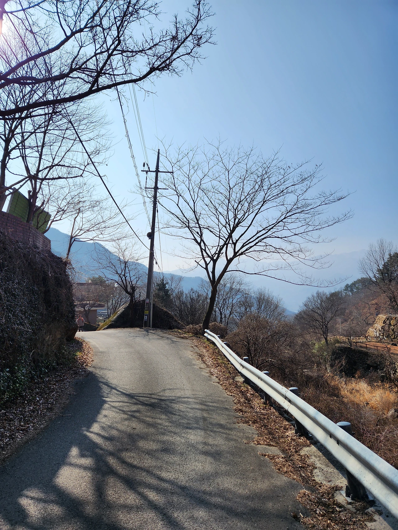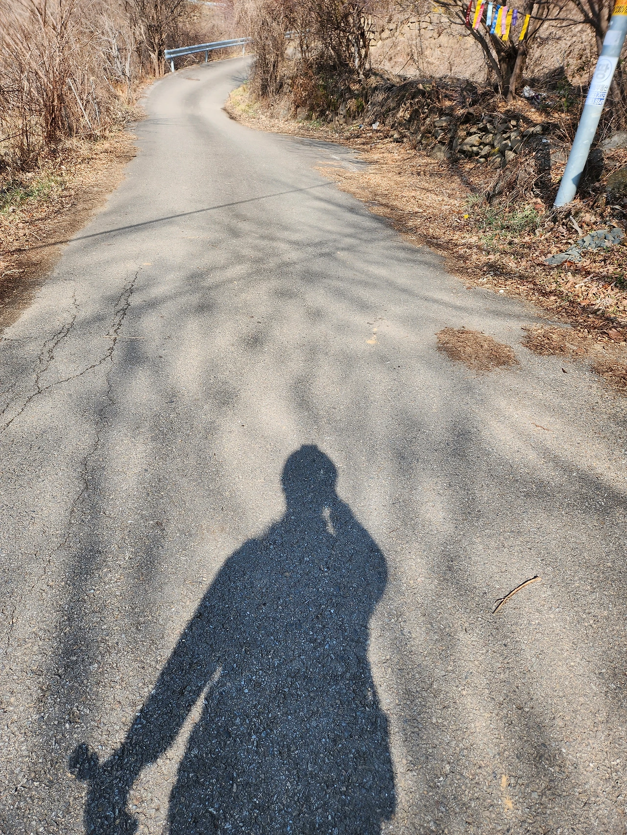 방학이라 야외활동이 거의 없이 지내는 강이는 지난번 둘레길을 걷고 난 이후로 이렇게 몸을 움직이는 것이 처음이다. 겨우 집 근처 학원에 다녀오는 것 말고는 아무것도 하지 않았다. 그래서 더 힘들다. 이렇게 갑자기 한꺼번에 많이 움직이는 것도 좋은 것만은 아닌 줄도 안다. 현실은 어디쯤에 있는 정거장인가. 나는 늘 현실을 놓치고 지나치는 운전수 같다. 아이를 도울 방법도 도울 기회도 제대로 갖지 못하고 산다. 그래서 강이를 민다. 아이가 힘든 만큼 그게 내 탓인 것 같아서 강이의 호흡을 돕는다. 이참에 너는 숨을 고르는 거야. 코로 쉬고 입으로 천천히 뱉고, 걷지 말고 가만히, 내가 미는 대로 가만히 앞으로 가는 거야. 나는 강이가 건강하기를 바란다. 이만하면 괜찮다. 업어달라고 떼를 쓰던 아이가 이만큼 컸다. 길 한쪽에 조릿대가 자란 곳에 채 녹지 않은 눈이 보였다. 다 녹고 여기만 이렇게 남아있었구나. 진귀한 것들은 보물 대접을 받는데 이대로 봄이 올 때까지 과연 너는 너를 지킬 수 있을까. 쉬면서 올랐다. 약과 하나씩, 산이는 소시지도 하나 까먹었다. 12시 36분, 가탄 9.1km 남은 지점에서 삼거리를 만났다. 활공장이 있는 형제봉은 오른편에, 가탄으로 가는 둘레길은 왼편이다. 우리는 왼쪽 길이다. 아, 평지가 나왔다. 이렇게 갑작스럽게 나올 줄이야. 포장도로도 동시에 끝났다. 흙길, 산길 그대로 난 길에 들어섰다. 뜻밖이란 듯 서로 좋아했다. 이래도 되는 거야, 속으로 박수를 쳤을 것이다. 나도 그랬으니까. 하지만 정작 15코스는 거기서부터였다.