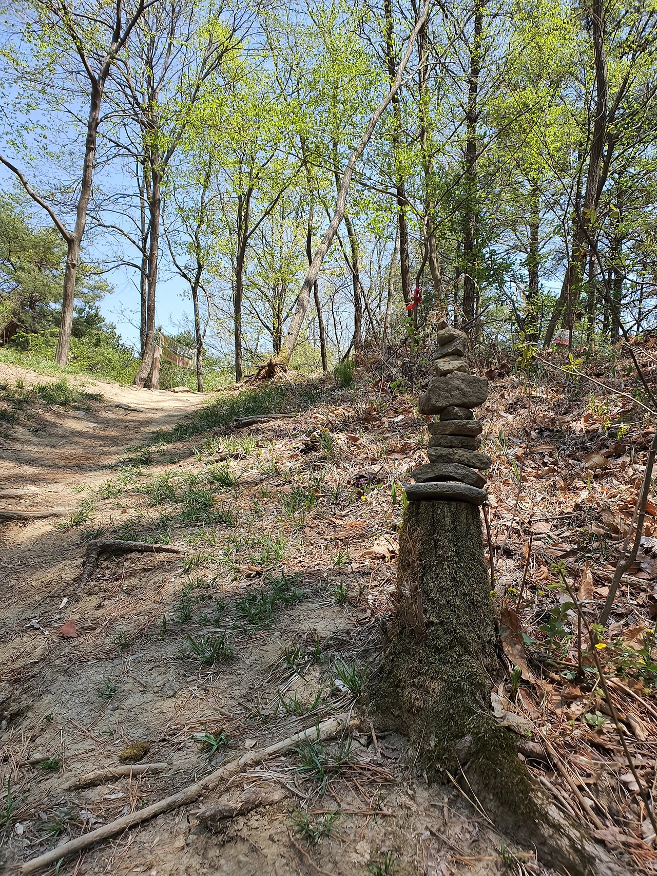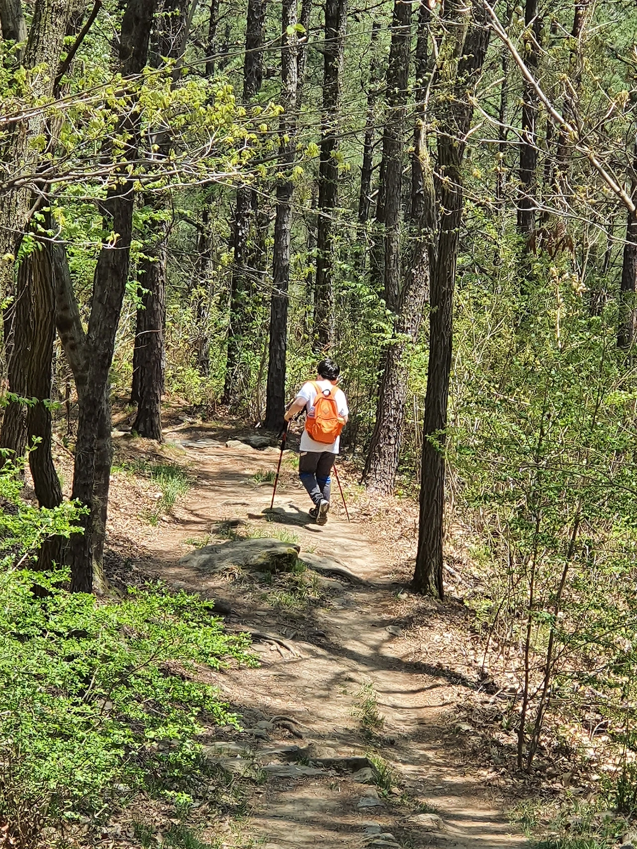 산이는 오렌지색 가방을 메고 양손에 등산 스틱을 쥐고 혼자서 흰 반팔 티셔츠를 입고 걷는다. 우리는 모두 긴 팔인데 제일 씩씩하다. 어제 무릎이 아팠던 사람이 맞는지, 길도 모르면서 쭉쭉 앞에 가고 있다. 파릇파릇한 봄기운이 뒤따라 가고 있는 것이 나는 보이는데 산이는 알까.
