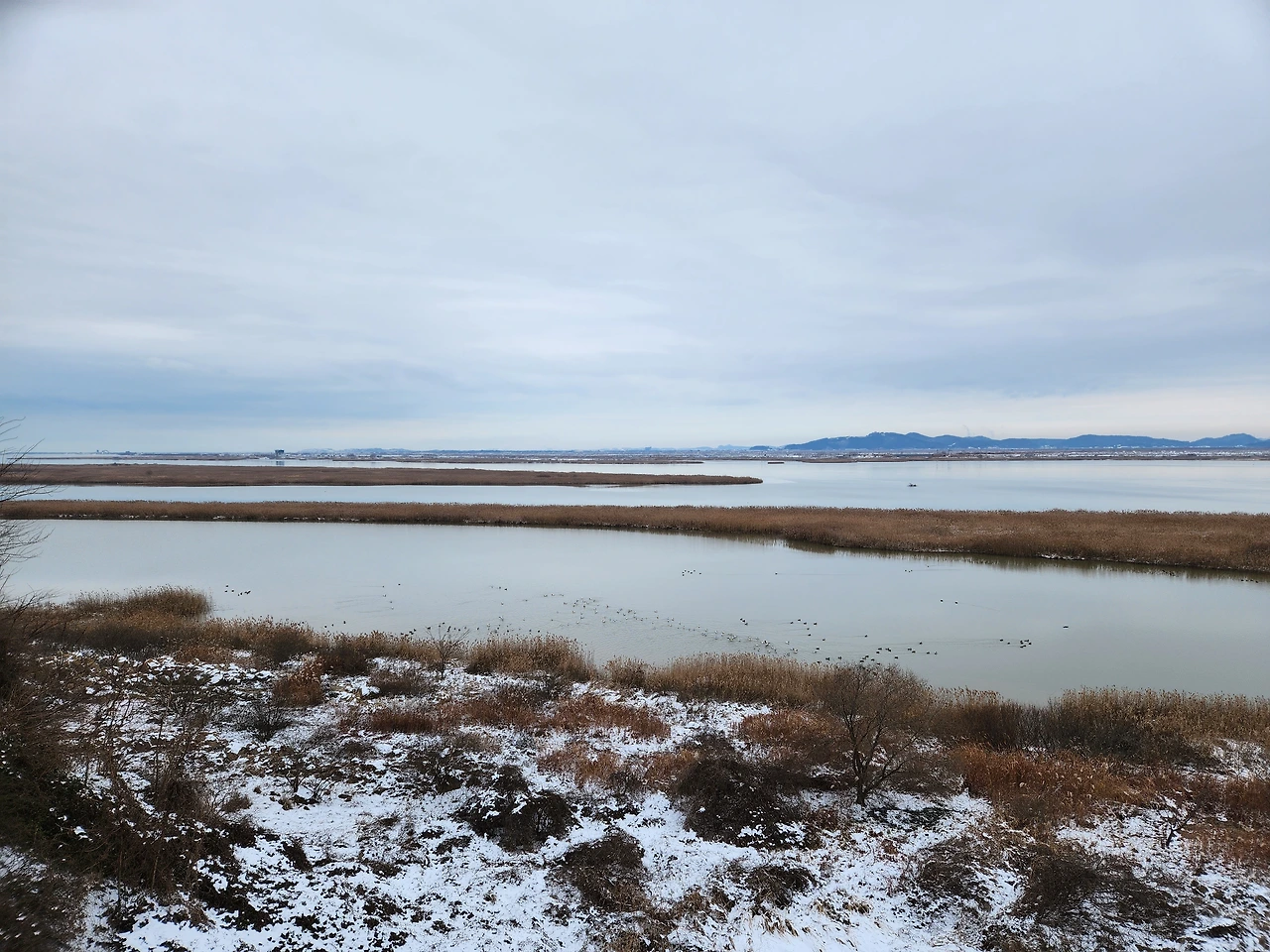 허리가 아프니까 며칠 서서 글을 썼지만 탐탁하지 않았다. 무엇일까. 개운하지 않은 입가심은 꼭 제목을 달지 못한 시詩를 바라보는 마음이었다. 어떤 사람의 이름이 내게 남았는가. 이름을 잊고 그 얼굴이 떠오르는 괴로움 속으로 걸어가던 날들이 저녁노을 속에 비쳤다. 저 노을을 호수가 담고 있다. 그 호수를 내가 찍었다. 아니, 그 찍었다가 아니라 이 찍었다다. 내가 콕 찍었다. 서서 글을 쓰다가 밖을 나와 어디로 갔다. 서툴러 보였던가 아니면 서두르는 것 같았을까. 따라 나오는 아내를 옆에 태우고 갈 곳 모르는 곳에 닿고서 차도 버려두고 천천히 걷는 수밖에 다른 것이 없었다.