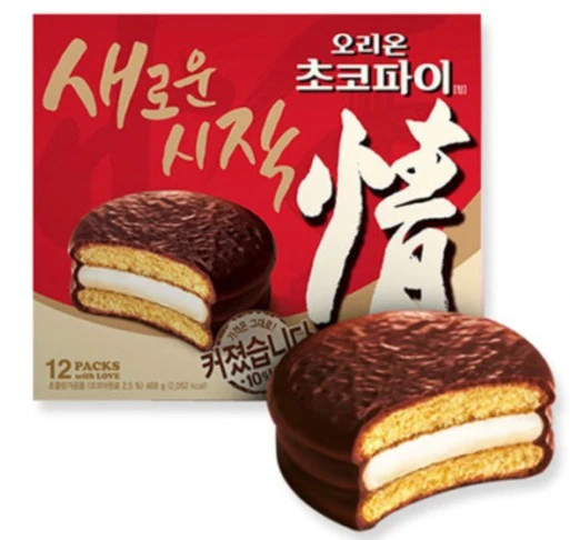 그리고 며칠 지나서 이번에는 초코파이가 있었다. 한 번도 궁금하지 않았던 것이 참 크래커 이후로 자꾸 확인하고 싶어졌다. 다 아는 것처럼 초코파이 봉지에는 커다랗게 情이라고 약간 흘려 쓴 글자가 있다.
