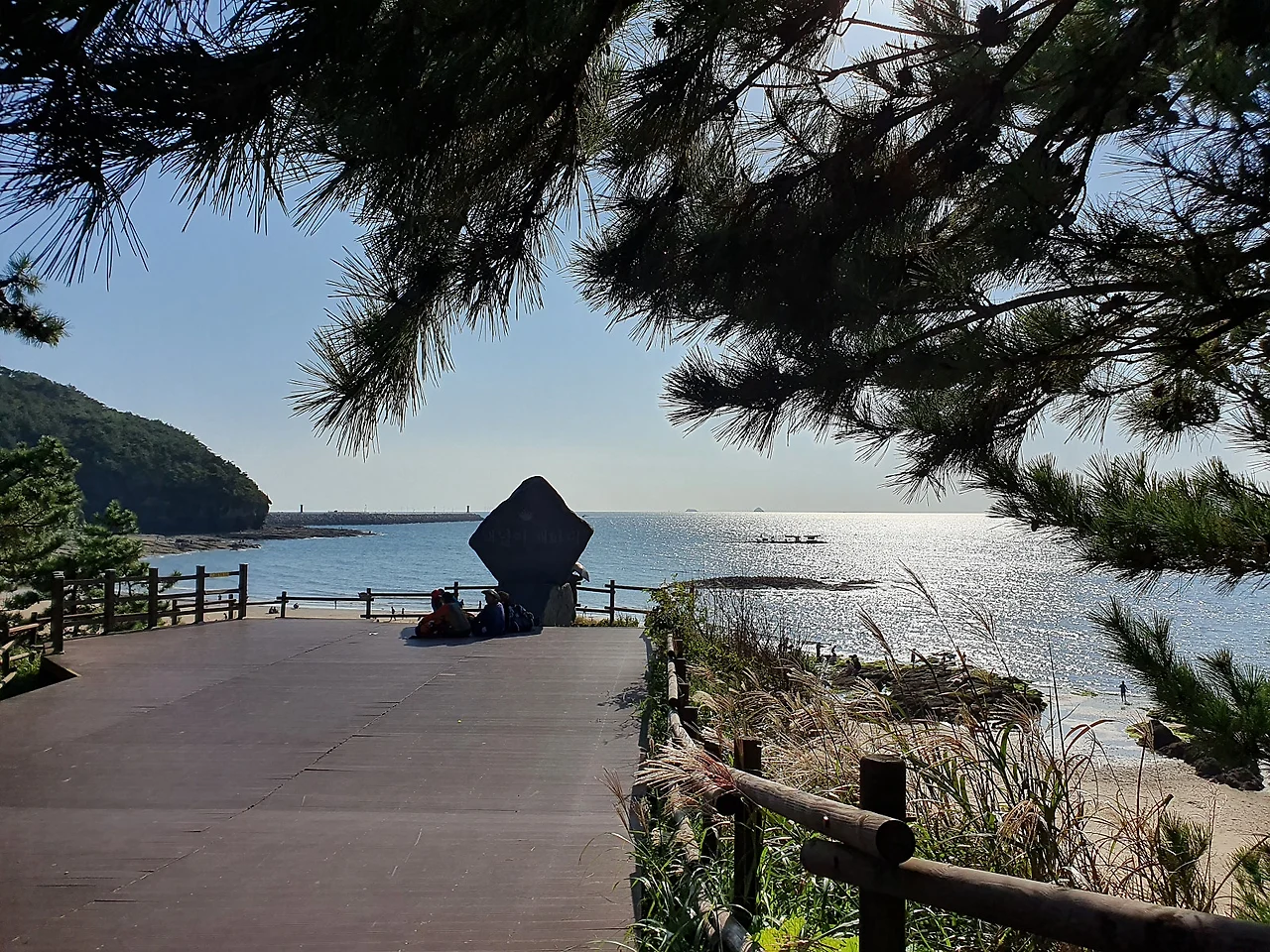 저 하늘을 그리고 저 바다를 코발트블루라고 부를 것이다. 블루는 푸르고 맑다. 건너편이 사라진 것처럼 투명한 것이 물이 가진 맑음이라면 하늘과 바다는 거기에 무엇을 더 넣었을까. 고흐가 그린 그림에도 수백 종류의 노랑이 있다던데 맑음도 그럴까. 이 맑음은 저 맑음과 출신이 다르고 배경이 다르고 생김새가 다른 것일까. 하늘이 맑으니까 바다도 맑다. 서로가 서로를 비추며 즐거워하는 모양이 보는 사람까지도 가볍다. 눈이 부시게 푸르른 날은 그래, 우리는 거기 마실길에 있었다.