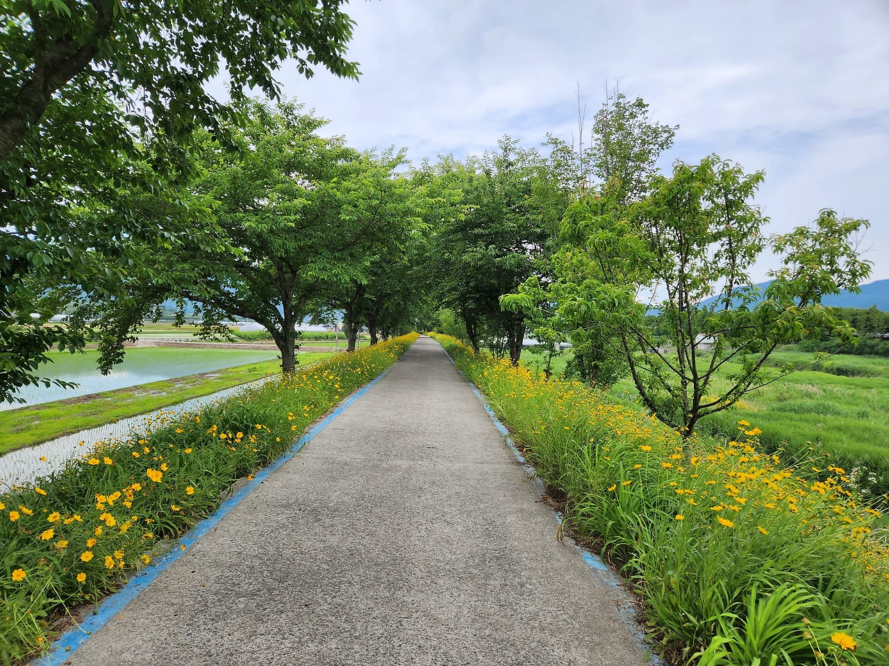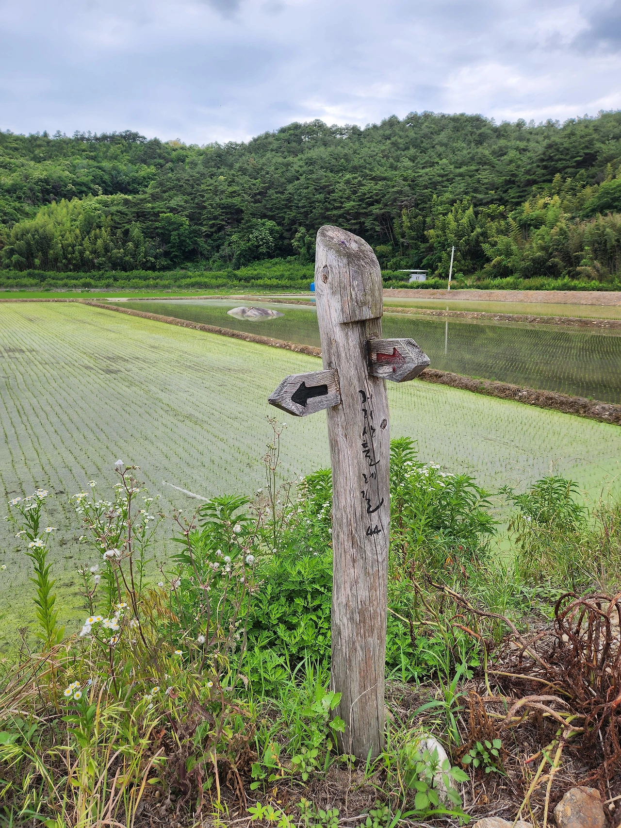 길에서 배운 것을 길에서 실천한다. 광의 면사무소 앞에서 목을 축이고 남은 6km를 걸었다. 길이 산 하나 가 없이 그대로 평지였다. 가물었는지 세심정 앞은 물이 말랐다. 시절이 좋았을 때는 여기에서도 제법 풍류를 읊었을 것이다. 세심정이란 이름도 곳곳에 많은 편이다. 국사봉, 향로봉이 우리나라 산 이름에 많다고 그러는 것처럼.
