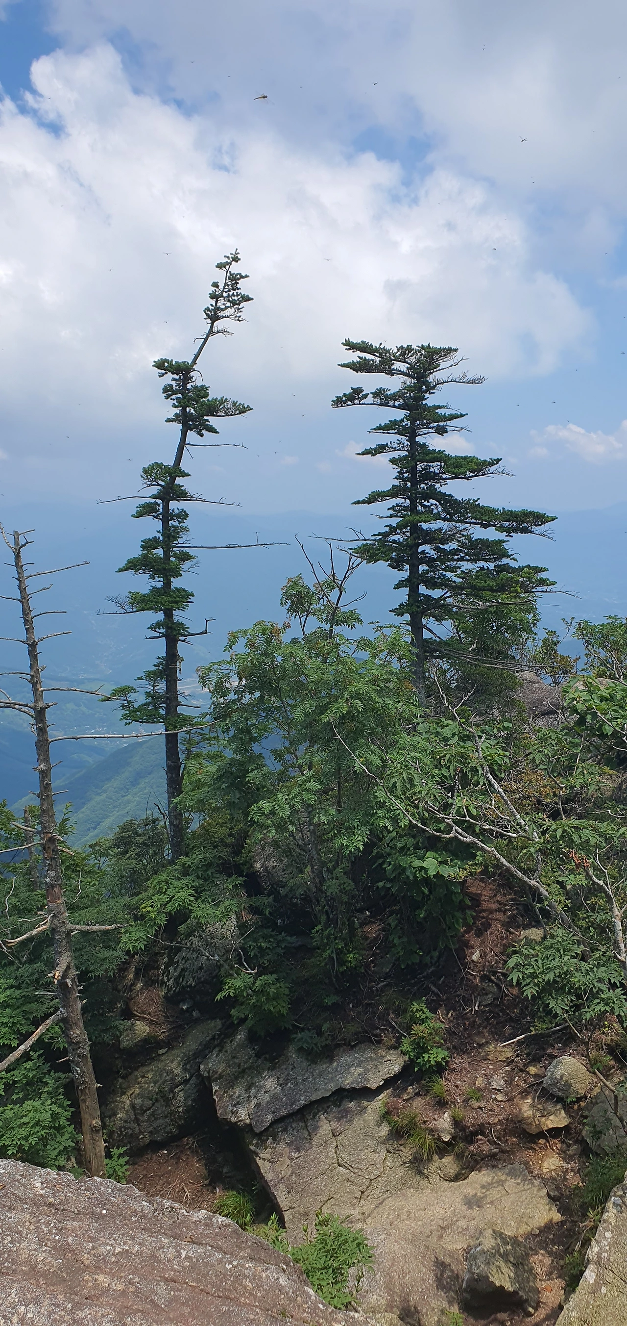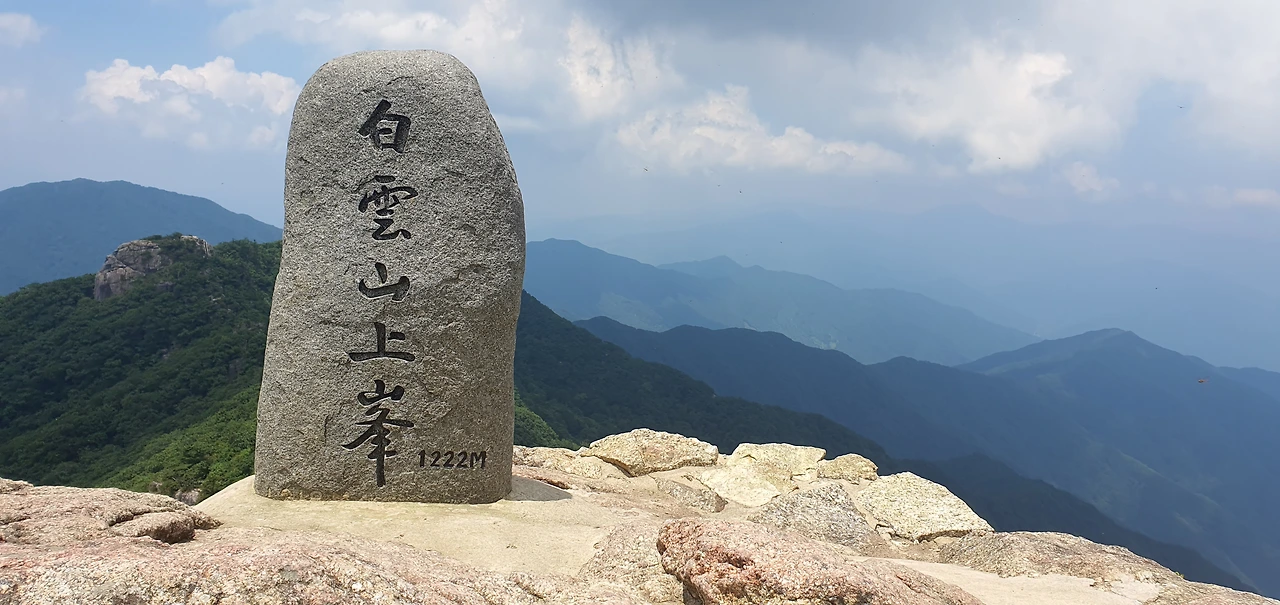 아침에 쓴 일기를 다시 읽으면서 이만큼 좋은 도량 道場이 있을까 생각한다. 어제 이름도 좋아 보이는 진틀 마을을 지날 무렵에 그렇잖아도 자기네들도 걷다가 더워서 힘들었다며 어떠냐고 아내가 전화를 걸어왔다. 하고많은 날 중에 이렇게 더운 날을 골랐다며 혀를 찬다. 숨이 찼지만 우스웠다. 내가 날짜를 봐가면서 먹고사는 사람도 아닌 줄 뻔히 아는 사람이 푸념이니까 아이가 투정 부리는 것도 같았다. 가난하면서 용기도 없으면 뭐 하고 살겠나. 쉰이 넘어서부터는 슬쩍 이렇게 밑장 빼기 하듯이 아내에게 말을 놓고 지낸다. 그러면 순진한 아내는 그런다. 그렇기는 해요, 그렇기는 해요, 그 말을 지팡이 삼고 오르막이 올랐다. 백운산은 처음이라 무엇보다 내가 내 상태가 잘 가늠되지 않는 처지라 용기를 내되 무모하게 덤비지 않기로 했다. 사람들이 잘 다니는 1코스가 무난해 보였다. 옆으로 계곡 물소리가 우렁찼다. 산을 오르고 다 내려오면서 저 물속에 빠져야겠다는 생각이 어찌나 절실하던지, 아마 모를 것이다. 배낭이며 옷이 땀에 미끈거렸다. 무릎 보호대에 하얗게 소금이 번졌다. 나는 길을 일부러 잃는 것인지 그것도 운명인지, 참 멋지게 해낸다. 그래 그 이야기는 서두르지 말자. 지금은 오르는 길, 신선대 먼저 들르자. 백운이라는 이름을 가진 산도 아마 많이 있을 것이지만 신선이라는 이름은 또 얼마나 익숙한지 친근감마저 든다. 거기 서울에서 왔다던 중년 부부와 마주친 곳이다. 아주머니 왼팔에 묵주가 감겨 있어서 먼저 알아차리고 인사를 건넸다. 아저씨도 반갑게 세례명을 소개했다. 두 사람 사진을 찍어주고 정상을 향했다. 1222M, 白雲山上峯. 정상석이 아담하니 품에 들었다. 친구 한 명에게 메시지를 보냈다.