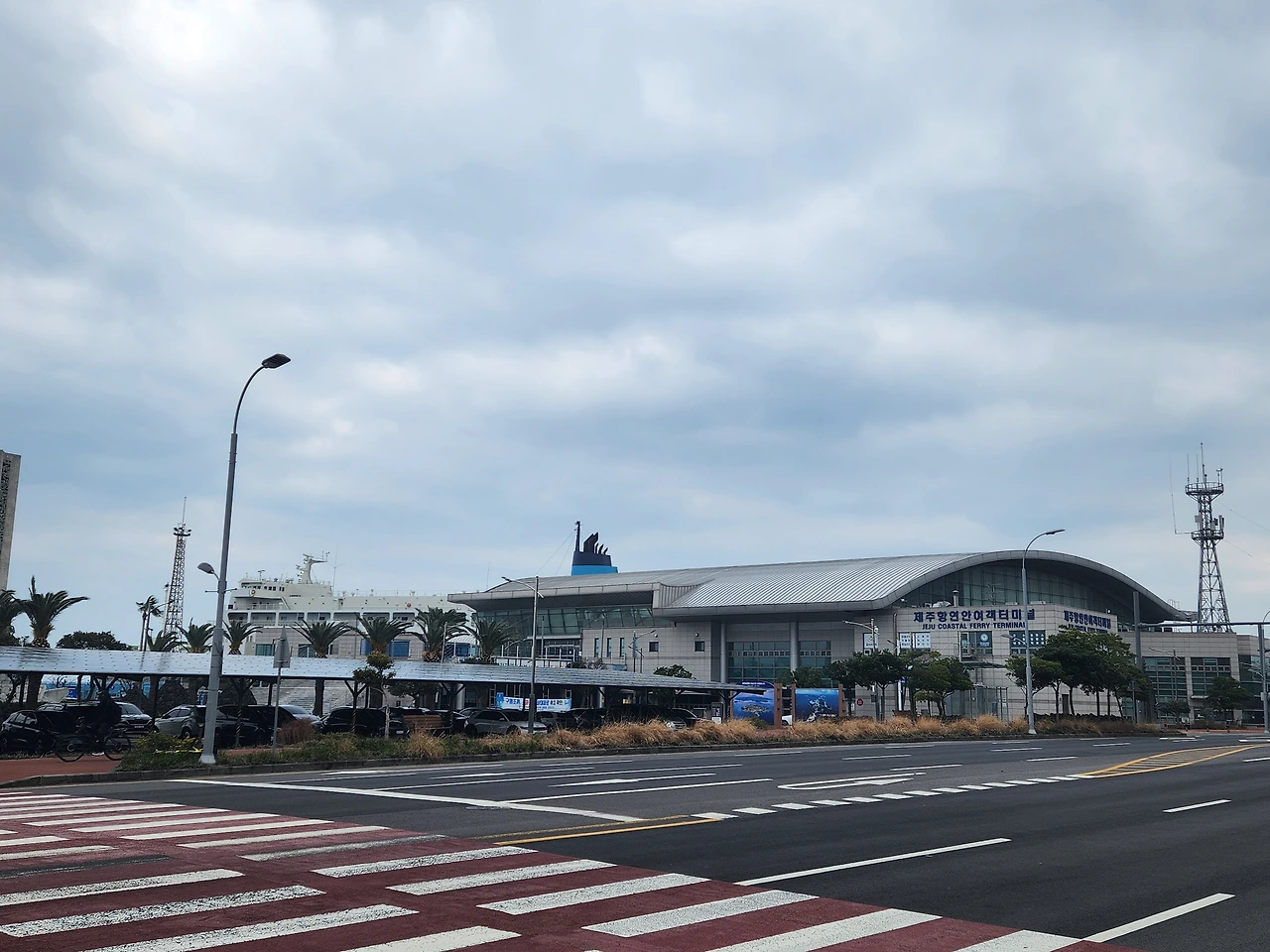 길 왼편에 제주항 연안여객터미널의 둥그런 지붕이 보였다. 오늘은 어떤 배가 기다리고 있을까. 배를 타고 왔던 지난해 봄을 떠올리다가 문득 오른편에 있는 너른 광장이 눈에 들어왔다. 공원 같은데 그러기에는 색감이 없이 회색 톤이다. 저 중앙에 탑인 듯 보이는 조형물도 있다. 저쪽에 안내 표지판 발견, 주정공장수용소 4·3 역사관 & 역사 공원.