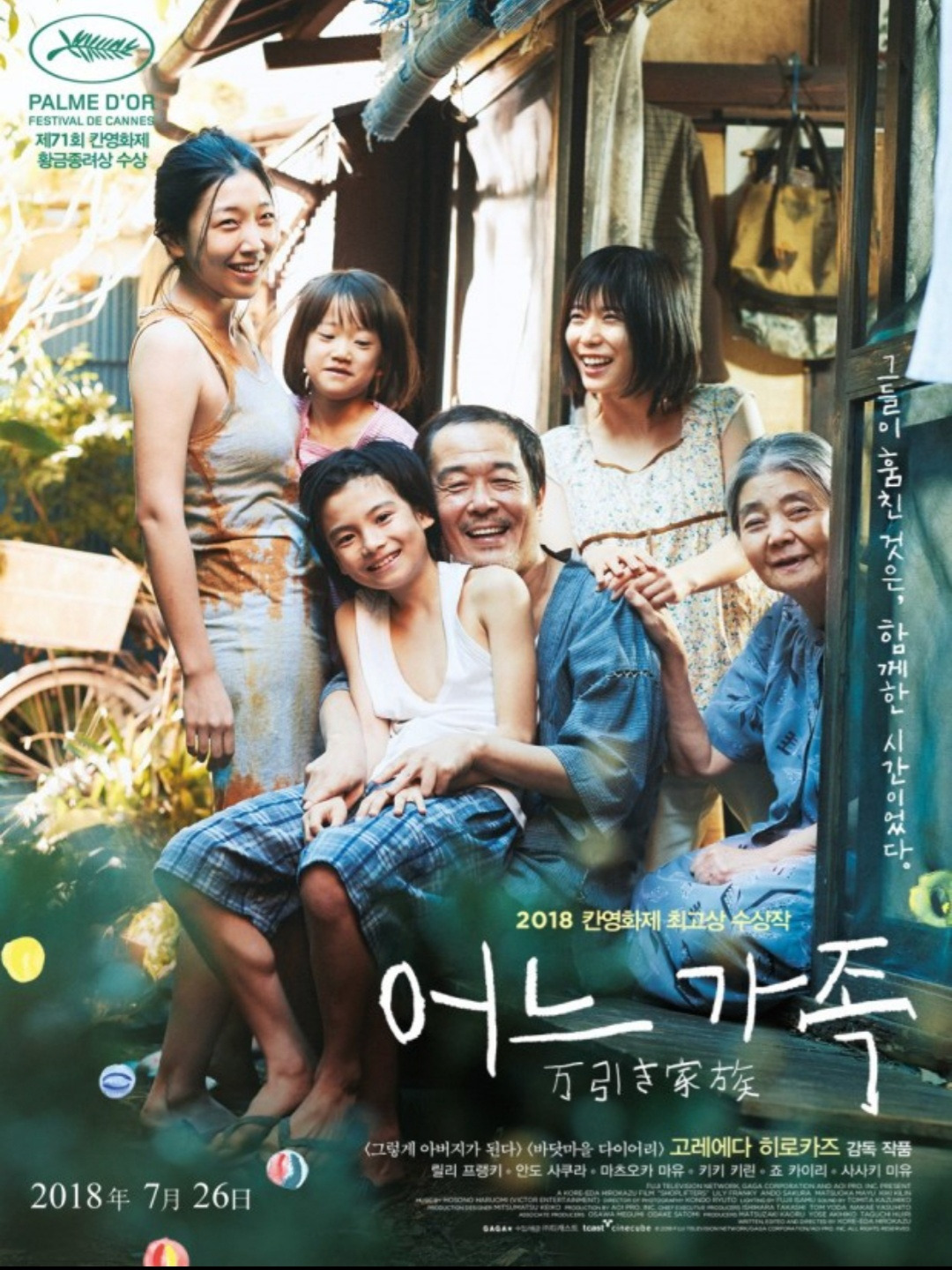 고레에다 히로카즈 감독의 '어느 가족'을 폭우가 내린 토요일 밤에 봤다.